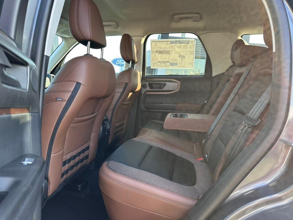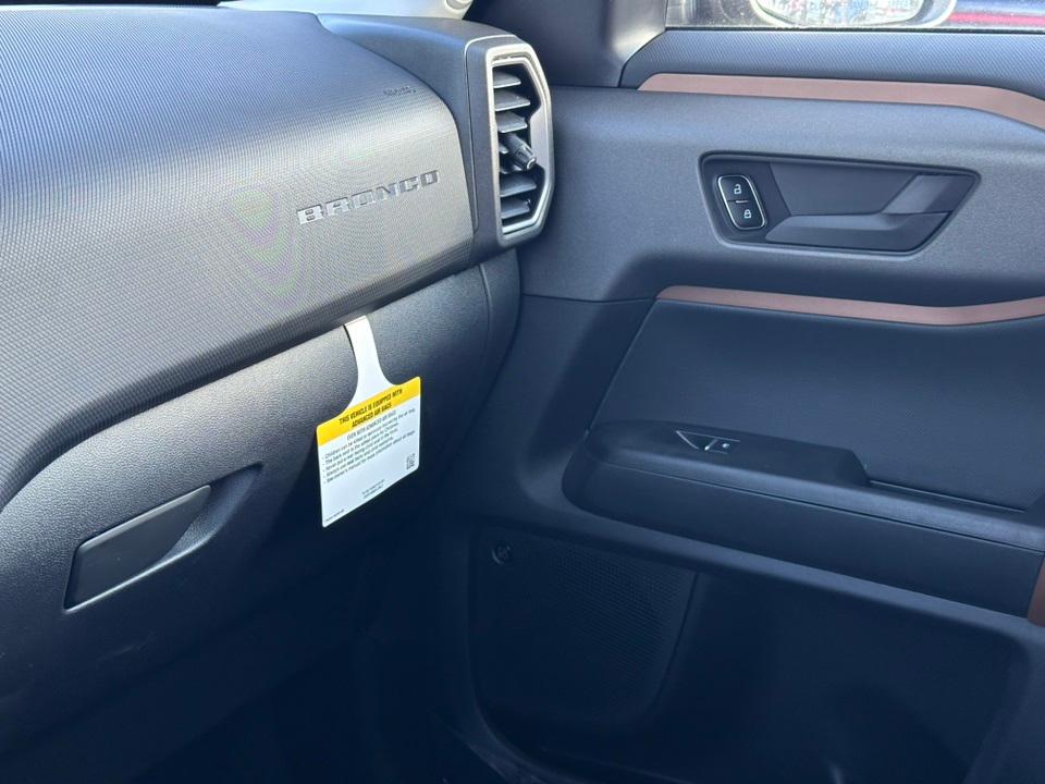 2025 Ford Bronco Sport Outer BanksEquipment Group 300A, Outer Banks Tech Package+ (B&O Sound System by Bang & Olufsen, Connected Navigation, and HD Radio), 360-Degree Camera w/Trail & Split View, 4-Wheel Disc Brakes, 6 Speakers, ABS brakes, Air Conditioning, Alloy wheels, AM/FM radio: SiriusXM, AM/FM Stereo, Auto High-beam Headlights, Auto-dimming Rear-View mirror, Automatic temperature control, Brake assist, Compass, Delay-off headlights, Driver door bin, Driver vanity mirror, Dual front impact airbags, Dual front side impact airbags, Electronic Stability Control, Emergency communication system: SYNC 4 911 Assist, Four wheel independent suspension, Front anti-roll bar, Front Bucket Seats, Front Center Armrest, Front Driver/Passenger Seat Back Map Pockets, Front dual zone A/C, Front fog lights, Front License Plate Bracket, Front Parking Sensors, Front reading lights, Fully automatic headlights, Garage door transmitter, Heated door mirrors, Heated front seats, Heated steering wheel, Illuminated entry, Knee airbag, Low tire pressure warning, Memory seat, Occupant sensing airbag, Outside temperature display, Overhead airbag, Overhead console, Panic alarm, Passenger door bin, Passenger vanity mirror, Power door mirrors, Power driver seat, Power passenger seat, Power steering, Power windows, Premium Trimmed Front Bucket Seats w/Ebony/Roast, Radio data system, Rain sensing wipers, Rear anti-roll bar, Rear Parking Sensors, Rear reading lights, Rear seat center armrest, Rear window defroster, Rear window wiper, Remote keyless entry, Reverse Brake Assist, Security system, SiriusXM, Speed control, Speed-sensing steering, Speed-Sensitive Wipers, Split folding rear seat, Steering wheel mounted audio controls, SYNC 4 w/Enhanced Voice Recognition, Tachometer, Telescoping steering wheel, Tilt steering wheel, Traction control, Trip computer, Variably intermittent wipers, and Wheels: 18" Ebony Black-Painted Aluminum.