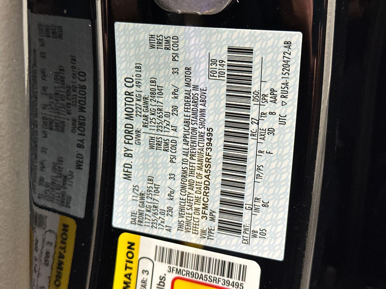 VIN #: 3FMCR9DA5SRF39495
