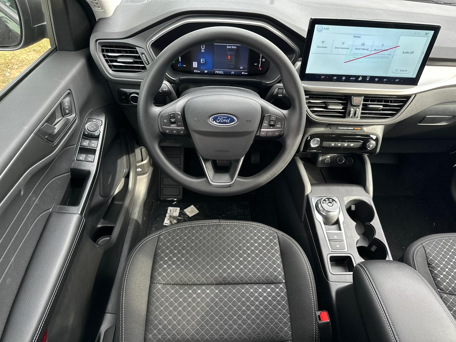 2025 Ford Escape ActiveEquipment Group 200A, Tech Pack #1 (Adaptive Cruise Control w/Stop-and-Go, Connected Navigation, Ford Co-Pilot360 Assist+, Intersection Assist, Predictive Speed Assist, Rear Parking Sensor, Rear-View Camera, and SYNC 4 w/Enhanced Voice Recognition), AWD, 3.81 Axle Ratio, 4-Wheel Disc Brakes, 6 Speakers, ABS brakes, Air Conditioning, Alloy wheels, AM/FM radio: SiriusXM, AM/FM Stereo, Auto High-beam Headlights, Automatic temperature control, Brake assist, Bumpers: body-color, Compass, Delay-off headlights, Driver door bin, Driver vanity mirror, Dual front impact airbags, Dual front side impact airbags, Electronic Stability Control, Emergency communication system: SYNC 4 911 Assist, FordPass Connect, Four wheel independent suspension, Front anti-roll bar, Front Bucket Seats, Front Center Armrest, Front dual zone A/C, Front License Plate Bracket, Front reading lights, Fully automatic headlights, Illuminated entry, Knee airbag, Low tire pressure warning, Occupant sensing airbag, Outside temperature display, Overhead airbag, Overhead console, Panic alarm, Passenger door bin, Passenger vanity mirror, Power door mirrors, Power Liftgate, Power steering, Power windows, Radio data system, Rear anti-roll bar, Rear reading lights, Rear seat center armrest, Rear window defroster, Rear window wiper, Remote keyless entry, Speed control, Speed-sensing steering, Speed-Sensitive Wipers, Split folding rear seat, Spoiler, Steering wheel mounted audio controls, SYNC 4, Tachometer, Telescoping steering wheel, Tilt steering wheel, Traction control, Trip computer, Unique Cloth Front Bucket Seats, Variably intermittent wipers, and Wheels: 17" Shadow Silver-Painted Aluminum.