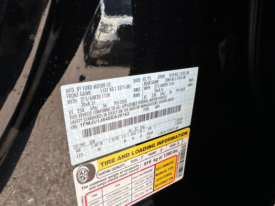 2025 Ford Expedition ActiveConnectivity Package (One-Time Purchase), Equipment Group 202A High Package (110V/400W AC Power Outlet, 26mm Engine Radiator, 2nd Row Power-Folding Captain's Chairs, 360-Degree Zone Lighting, 3rd Row Flexible Seating, 3rd Row Vinyl Seats, 4-Door Intelligent Access (Lock/Unlock), ActiveX Front Heated Captain's Chairs, BlueCruise Equipped, Flex Powered Console, Ford Split Gate, Front Side Laminated Glass, Heated Steering Wheel, Heavy-Duty Trailer Tow, Integrated Trailer Brake Control, Memory Driver Seat, Power Panoramic Vista Roof w/Power Sunshade, Power Tilt/Telescopic Steering Wheel w/Memory, Power-Folding Sideview Mirrors w/Autofold, Rain Sensing Wipers, SecuriCode Keyless Entry Pad, Universal Garage Door Opener, USB Ports, Wheels: 20" Carbonized Gray Bright Machined Aluminum, and Wireless Charging Pad), 4WD, 3.73 Axle Ratio, 3rd row seats: split-bench, 4-Wheel Disc Brakes, 6 Speakers, ABS brakes, Air Conditioning, Alloy wheels, AM/FM radio: SiriusXM with 360L, Apple CarPlay/Android Auto, Auto High-beam Headlights, Auto-dimming Rear-View mirror, Automatic temperature control, BlueCruise Equipped (One-Time Purchase), Brake assist, Bumpers: body-color, Cloth Front Captain's Chairs, Compass, Delay-off headlights, Driver door bin, Driver State Detection, Driver vanity mirror, Dual front impact airbags, Dual front side impact airbags, Electronic Stability Control, Emergency communication system: 911 Assist, Exterior Parking Camera Rear, Four wheel independent suspension, Front anti-roll bar, Front Bucket Seats, Front Center Armrest, Front dual zone A/C, Front License Plate Bracket, Front reading lights, Fully automatic headlights, Heated door mirrors, Illuminated entry, Intersection Assist, Low tire pressure warning, Navigation System, Occupant sensing airbag, Outside temperature display, Overhead airbag, Overhead console, Panic alarm, Passenger door bin, Passenger vanity mirror, Power door mirrors, Power driver seat, Power passenger seat, Power steering, Power windows, Radio data system, Radio: AM/FM Stereo w/MP3 Capable, Rear air conditioning, Rear anti-roll bar, Rear reading lights, Rear window defroster, Rear window wiper, Reclining 3rd row seat, Remote keyless entry, Security system, SiriusXM w/360L, Speed control, Speed-sensing steering, Speed-Sensitive Wipers, Split folding rear seat, Spoiler, Steering wheel mounted audio controls, Tachometer, Telescoping steering wheel, Tilt steering wheel, Traction control, Trip computer, Variably intermittent wipers, Voltmeter, and Wheels: 18" Dark Alloy Painted Aluminum.
