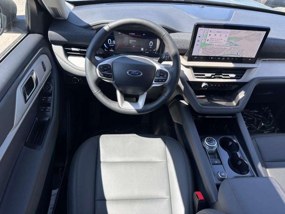 2025 Ford Explorer ActiveActive Comfort Package (Front Fascia, Heated ActiveX Seating Material Captain's Chairs, Heated Steering Wheel, Remote Start System, Second Row HVAC Controls, and Universal Garage Door Opener (UGDO)), Equipment Group 200A Standard Package, 4WD, 3.58 Non-Limited Slip Rear Axle, 3rd row seats: bench, 4-Wheel Disc Brakes, 6 Speakers, ABS brakes, Air Conditioning, Alloy wheels, AM/FM radio: SiriusXM with 360L, AM/FM Stereo, Apple CarPlay/Android Auto, Auto High-beam Headlights, Automatic temperature control, Brake assist, Bumpers: body-color, Compass, Delay-off headlights, Driver door bin, Driver vanity mirror, Dual front impact airbags, Dual front side impact airbags, Electronic Stability Control, Emergency communication system: 911 Assist, Exterior Parking Camera Rear, Four wheel independent suspension, Front anti-roll bar, Front Bucket Seats, Front Center Armrest, Front dual zone A/C, Front License Plate Bracket, Front reading lights, Fully automatic headlights, Heated door mirrors, Heated front seats, Illuminated entry, Knee airbag, Leather steering wheel, Low tire pressure warning, Navigation System, Occupant sensing airbag, Outside temperature display, Overhead airbag, Overhead console, Panic alarm, Panoramic Vista Roof w/Power Shade, Passenger door bin, Passenger vanity mirror, Power door mirrors, Power driver seat, Power Liftgate, Power passenger seat, Power steering, Power windows, Rear air conditioning, Rear anti-roll bar, Rear reading lights, Rear window defroster, Rear window wiper, Remote keyless entry, Security system, Speed control, Speed-sensing steering, Speed-Sensitive Wipers, Split folding rear seat, Spoiler, Steering wheel mounted audio controls, Tachometer, Telescoping steering wheel, Tilt steering wheel, Traction control, Trip computer, Unique Heated Cloth Captain's Chairs, Variably intermittent wipers, Wheels: 18" Sparkle Silver-Painted Aluminum, and Wheels: 20" Carbonized Gray-Painted Aluminum.