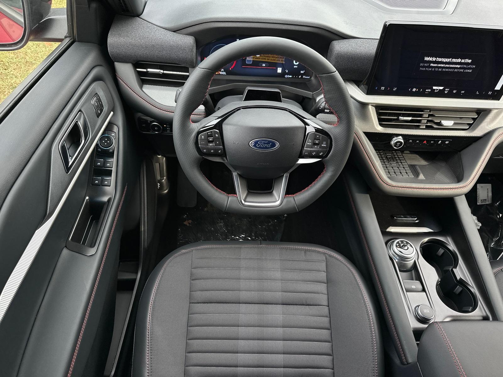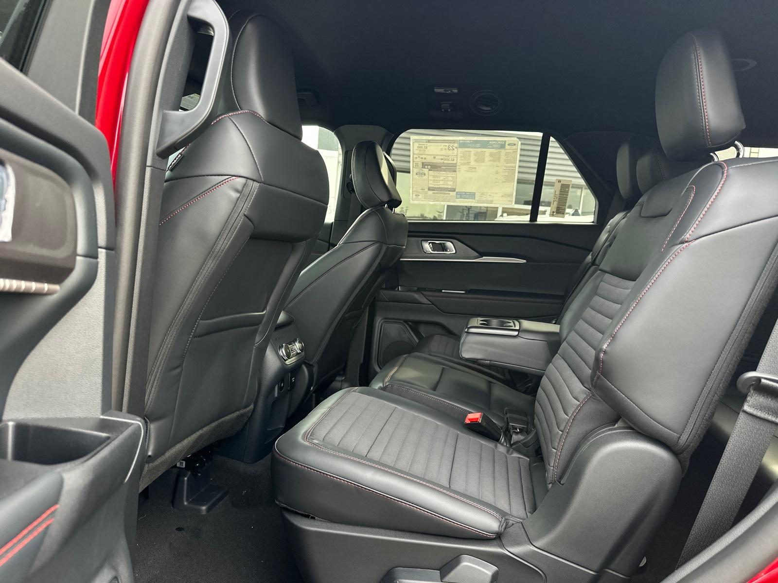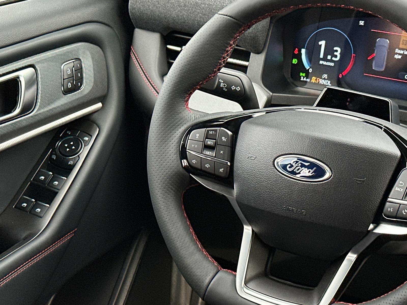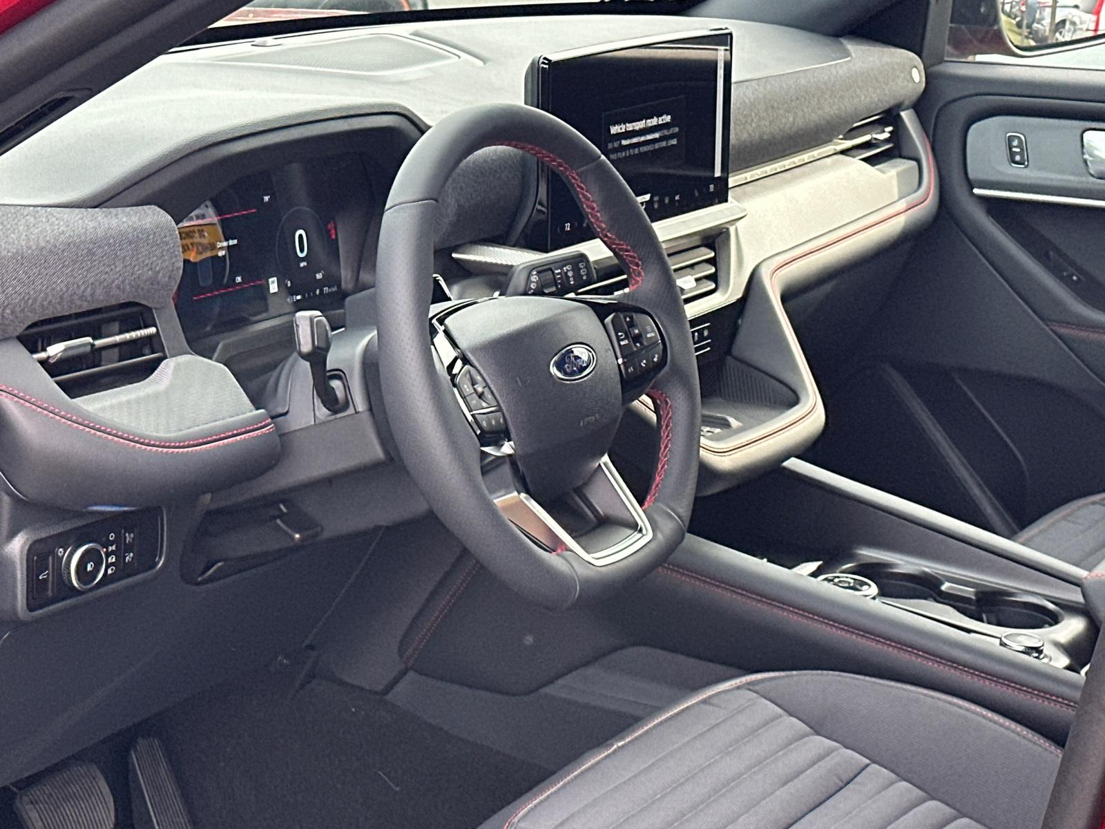 2025 Ford Explorer ST-LineEquipment Group 300A Standard Package, Premium Package (110V/150W AC Power Outlet, 2nd Row Heated Seats, Ambient Lighting, Auto-Dimming Interior Rear-View Mirror, Memory Driver's Seat, Power-Folding Sideview Mirrors w/Autofold, Rain-Sensing Wipers (Front Only), and Wireless Charging Pad), ST-Line Street Pack (Performance Brakes, Red Painted Perf Front & Rear Brake Calipers, and Wheels: 21" Magnetite-Painted Aluminum), 4WD, 10 Speakers, 3.58 Non-Limited Slip Rear Axle, 3rd row seats: bench, 4-Wheel Disc Brakes, ABS brakes, Air Conditioning, Alloy wheels, AM/FM radio: SiriusXM with 360L, Apple CarPlay/Android Auto, Auto High-beam Headlights, Automatic temperature control, Brake assist, Bumpers: body-color, Compass, Delay-off headlights, Driver door bin, Driver vanity mirror, Dual front impact airbags, Dual front side impact airbags, Electronic Stability Control, Emergency communication system: 911 Assist, Exterior Parking Camera Rear, Four wheel independent suspension, Front anti-roll bar, Front Bucket Seats, Front Center Armrest, Front dual zone A/C, Front fog lights, Front License Plate Bracket, Front reading lights, Fully automatic headlights, Garage door transmitter, Heated door mirrors, Heated front seats, Heated steering wheel, Heated Unique Cloth Captain's Chairs, Illuminated entry, Knee airbag, Leather steering wheel, Low tire pressure warning, Navigation System, Occupant sensing airbag, Outside temperature display, Overhead airbag, Overhead console, Panic alarm, Passenger door bin, Passenger vanity mirror, Power door mirrors, Power driver seat, Power Liftgate, Power passenger seat, Power steering, Power windows, Radio: B&O Sound System by Bang & Olufsen, Rear air conditioning, Rear anti-roll bar, Rear reading lights, Rear window defroster, Rear window wiper, Remote keyless entry, Security system, Speed control, Speed-sensing steering, Speed-Sensitive Wipers, Split folding rear seat, Spoiler, Steering wheel mounted audio controls, Tachometer, Telescoping steering wheel, Tilt steering wheel, Traction control, Trip computer, Variably intermittent wipers, and Wheels: 20" Ebony-Painted Machined Aluminum.