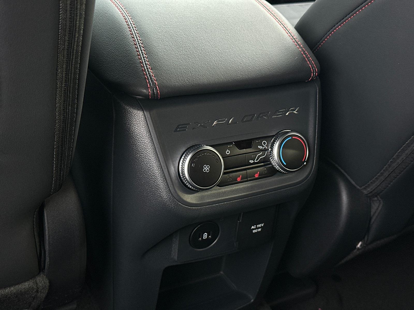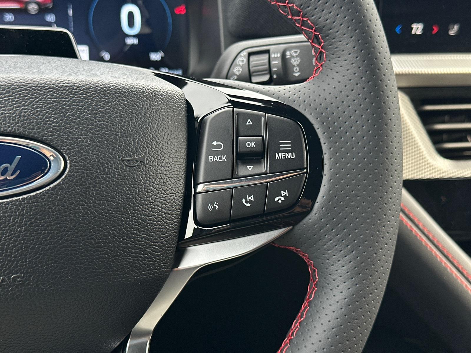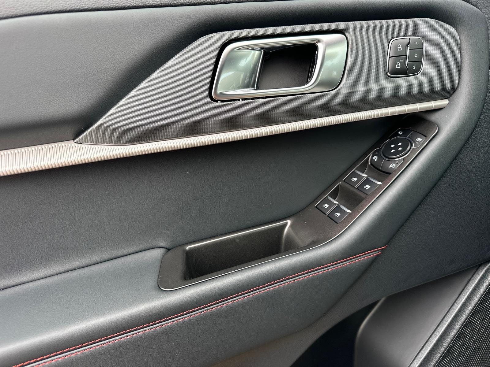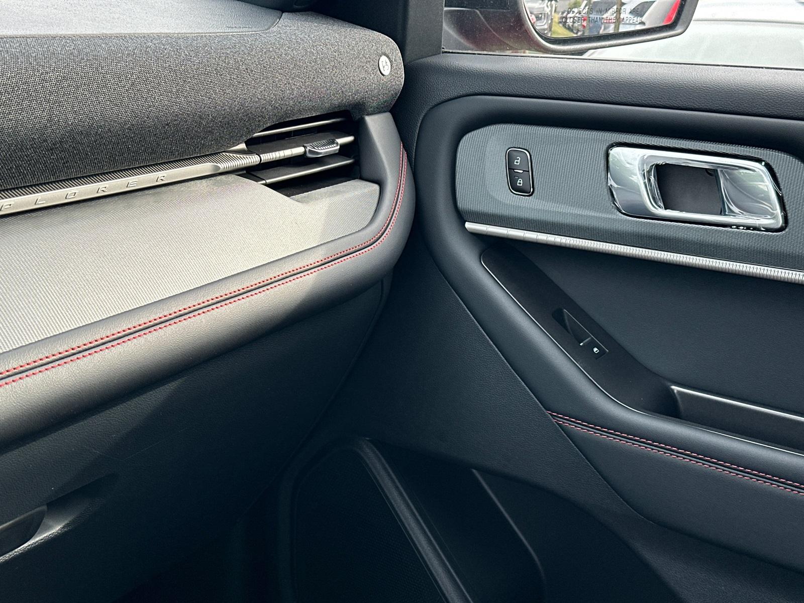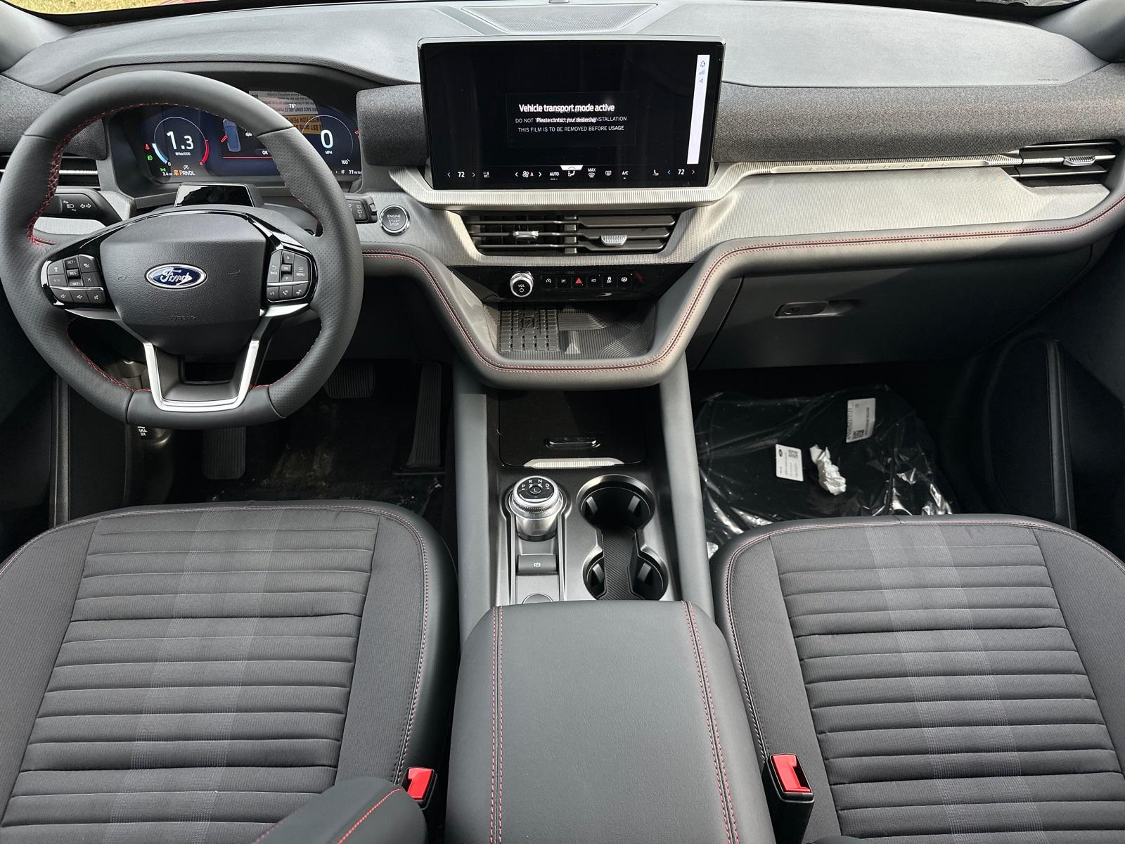 2025 Ford Explorer ST-LineEquipment Group 300A Standard Package, Premium Package (110V/150W AC Power Outlet, 2nd Row Heated Seats, Ambient Lighting, Auto-Dimming Interior Rear-View Mirror, Memory Driver's Seat, Power-Folding Sideview Mirrors w/Autofold, Rain-Sensing Wipers (Front Only), and Wireless Charging Pad), ST-Line Street Pack (Performance Brakes, Red Painted Perf Front & Rear Brake Calipers, and Wheels: 21" Magnetite-Painted Aluminum), 4WD, 10 Speakers, 3.58 Non-Limited Slip Rear Axle, 3rd row seats: bench, 4-Wheel Disc Brakes, ABS brakes, Air Conditioning, Alloy wheels, AM/FM radio: SiriusXM with 360L, Apple CarPlay/Android Auto, Auto High-beam Headlights, Automatic temperature control, Brake assist, Bumpers: body-color, Compass, Delay-off headlights, Driver door bin, Driver vanity mirror, Dual front impact airbags, Dual front side impact airbags, Electronic Stability Control, Emergency communication system: 911 Assist, Exterior Parking Camera Rear, Four wheel independent suspension, Front anti-roll bar, Front Bucket Seats, Front Center Armrest, Front dual zone A/C, Front fog lights, Front License Plate Bracket, Front reading lights, Fully automatic headlights, Garage door transmitter, Heated door mirrors, Heated front seats, Heated steering wheel, Heated Unique Cloth Captain's Chairs, Illuminated entry, Knee airbag, Leather steering wheel, Low tire pressure warning, Navigation System, Occupant sensing airbag, Outside temperature display, Overhead airbag, Overhead console, Panic alarm, Passenger door bin, Passenger vanity mirror, Power door mirrors, Power driver seat, Power Liftgate, Power passenger seat, Power steering, Power windows, Radio: B&O Sound System by Bang & Olufsen, Rear air conditioning, Rear anti-roll bar, Rear reading lights, Rear window defroster, Rear window wiper, Remote keyless entry, Security system, Speed control, Speed-sensing steering, Speed-Sensitive Wipers, Split folding rear seat, Spoiler, Steering wheel mounted audio controls, Tachometer, Telescoping steering wheel, Tilt steering wheel, Traction control, Trip computer, Variably intermittent wipers, and Wheels: 20" Ebony-Painted Machined Aluminum.
