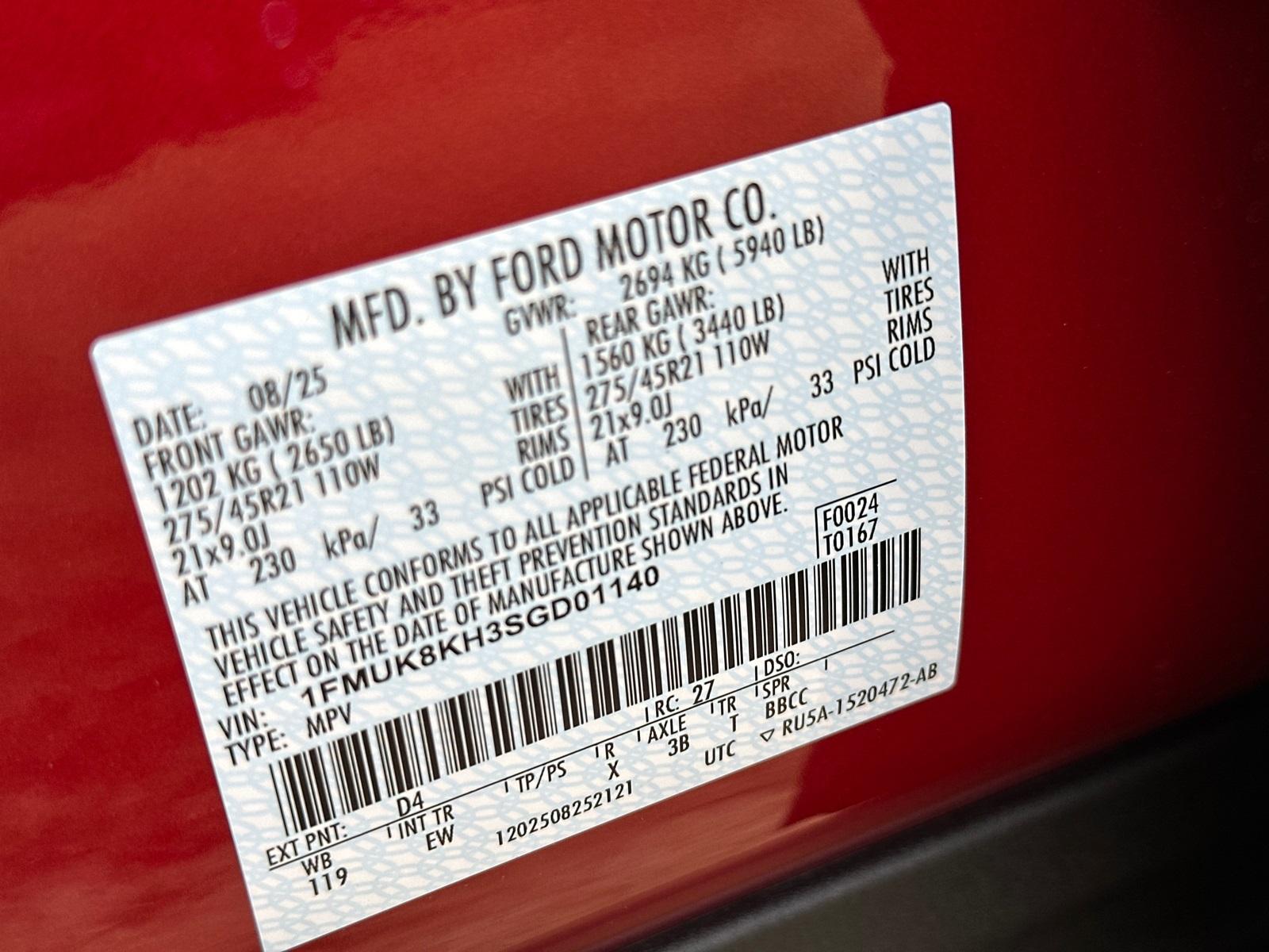 VIN #: 1FMUK8KH3SGD01140