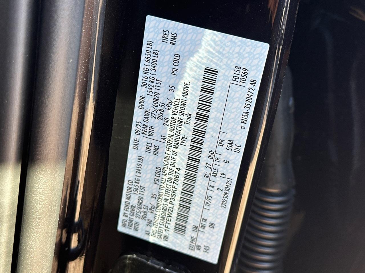 VIN #: 1FTEW2LP3SKF78674