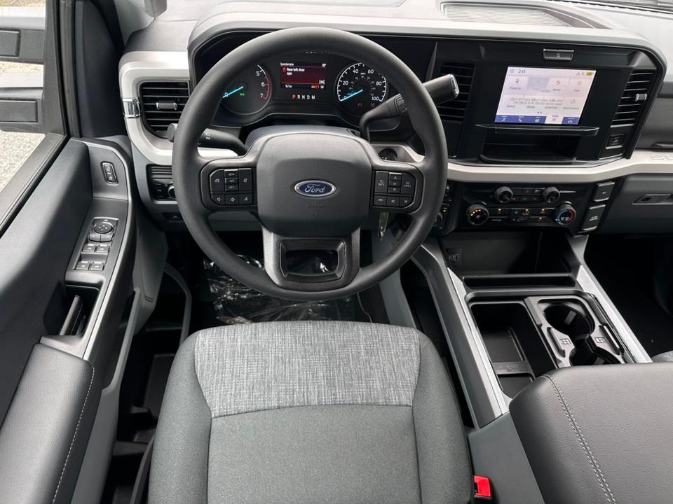 2025 Ford F-250SD XLTGVWR: 10,000 lb Payload Package, 4WD, ABS brakes, Alloy wheels, Compass, Electronic Stability Control, Heated door mirrors, Illuminated entry, Low tire pressure warning, Remote keyless entry, Traction control, 3.73 Axle Ratio, 4-Wheel Disc Brakes, 6 Speakers, Air Conditioning, AM/FM radio, AM/FM Stereo w/MP3 Player, Auto High-beam Headlights, Brake assist, Bumpers: chrome, Cloth 40/20/40 Split Bench Seat, Delay-off headlights, Driver door bin, Driver vanity mirror, Dual front impact airbags, Dual front side impact airbags, Emergency communication system: SYNC 4 911 Assist, Exterior Parking Camera Rear, Front anti-roll bar, Front Center Armrest w/Storage, Front fog lights, Front reading lights, Fully automatic headlights, Outside temperature display, Overhead airbag, Overhead console, Panic alarm, Passenger door bin, Passenger vanity mirror, Power door mirrors, Power driver seat, Power steering, Power windows, Privacy Glass, Rear reading lights, Rear step bumper, Security system, Speed control, Split folding rear seat, Steering wheel mounted audio controls, SYNC 4, Tachometer, Telescoping steering wheel, Tilt steering wheel, Trip computer, Turn signal indicator mirrors, Variably intermittent wipers, and Wheels: 18" Sparkle Silver Painted Cast Aluminum.