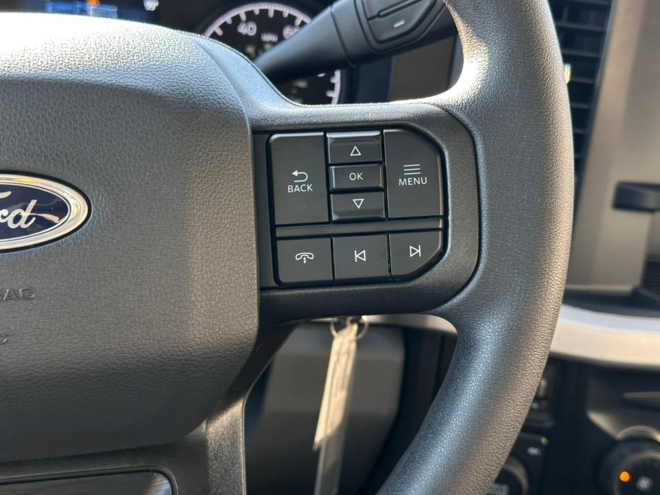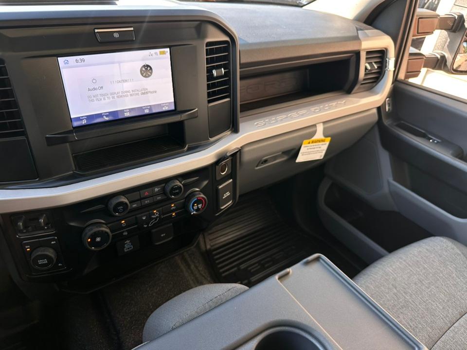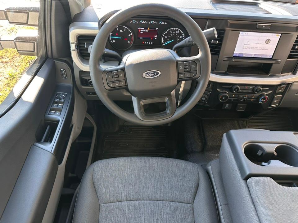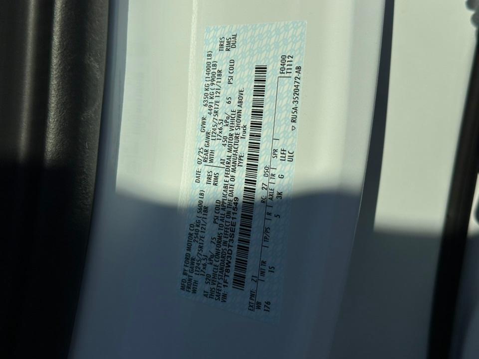 2025 Ford F-350SD XLGVWR: 14,000 lb Payload Package, Order Code 620A, XL Chrome Package (Chrome Front Bumper, Chrome Rear Step Bumper, and Halogen Fog Lamps), XL Driver Assist Package (Automatic High Beam and Pre-Collision Assist), 4WD, 120V/400W Outlet, 17" Argent Painted Steel Wheels, 17" Forged Polished Aluminum Wheels, 190 Amp Alternator, 4-Wheel Disc Brakes, 6 Speakers, ABS brakes, Air Conditioning, AM/FM radio, AM/FM Stereo w/MP3 Player, BLIS w/Cross-Traffic Alert, Brake assist, Cloth 40/20/40 Split Bench Seat, Compass, Delay-off headlights, Dual AGM 68 AH Battery, Dual front impact airbags, Dual front side impact airbags, Dual rear wheels, Electronic Stability Control, Emergency communication system: SYNC 4 911 Assist, Engine Block Heater, Exterior Parking Camera Rear, Front anti-roll bar, Front Center Armrest w/Storage, Front License Plate Bracket, Front reading lights, Fully automatic headlights, HD Vinyl 40/20/40 Split Bench Seat, Heated door mirrors, Illuminated entry, Low tire pressure warning, Outside temperature display, Overhead airbag, Overhead console, Panic alarm, Passenger vanity mirror, Platform Running Boards, Power door mirrors, Power steering, Power windows, Privacy Glass, Rear anti-roll bar, Rear Parking Sensors, Rear reading lights, Rear step bumper, Remote keyless entry, Security system, Speed control, Split folding rear seat, Steering wheel mounted audio controls, SYNC 4, Tachometer, Telescoping steering wheel, Tilt steering wheel, Traction control, Trailer Brake Controller, Trip computer, Turn signal indicator mirrors, Upfitter Switches (6), and Variably intermittent wipers.