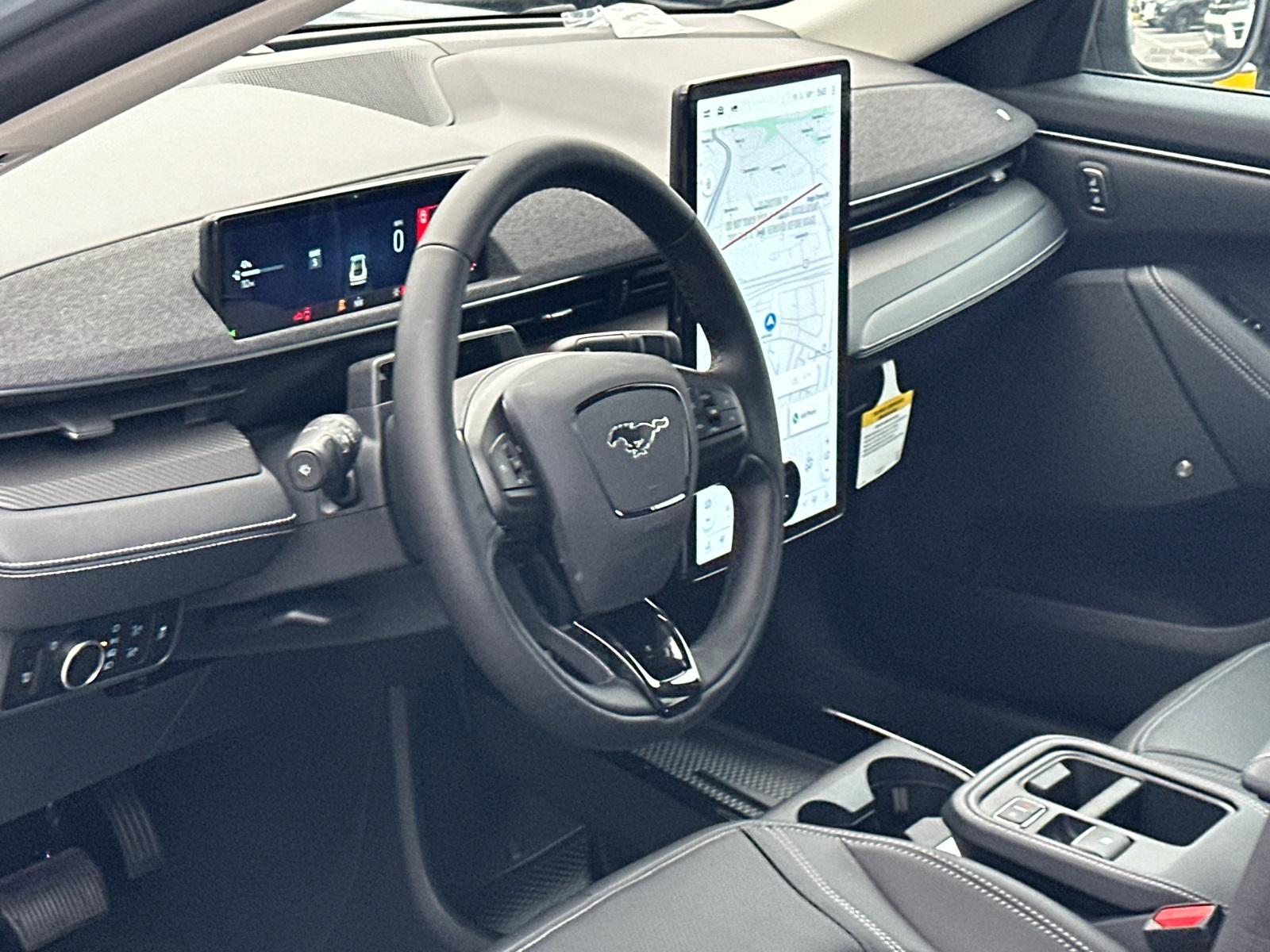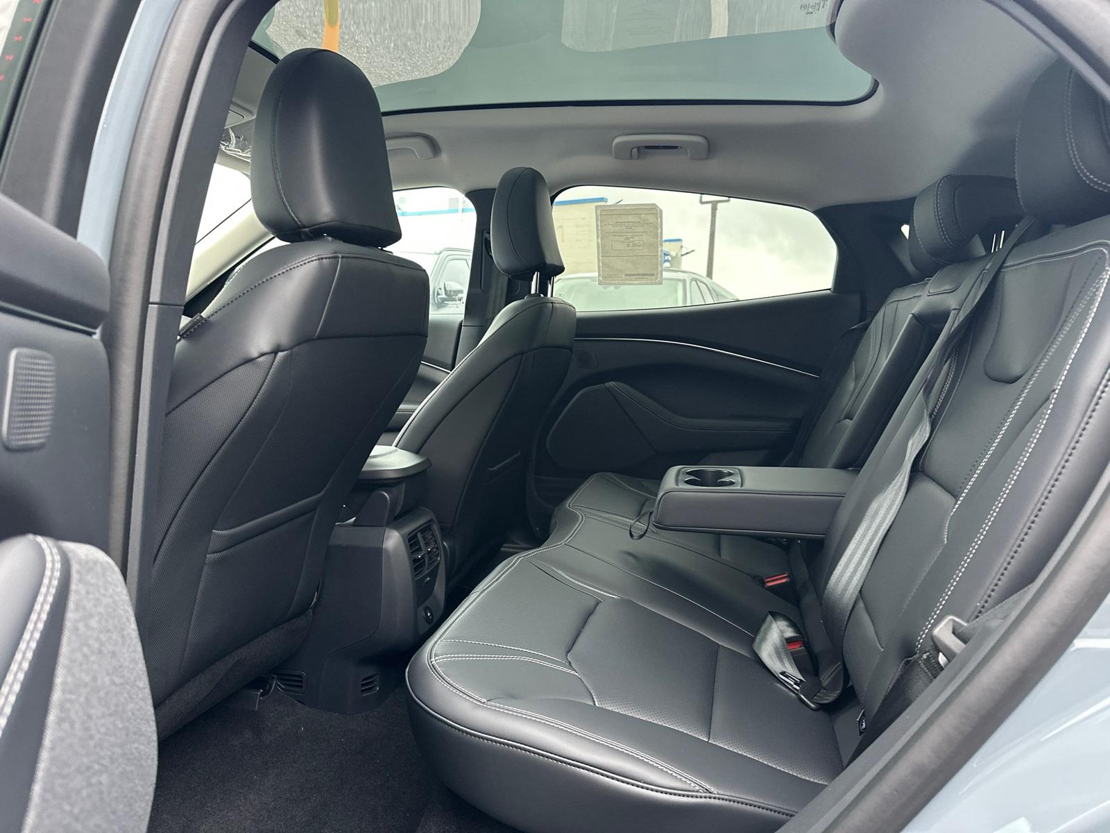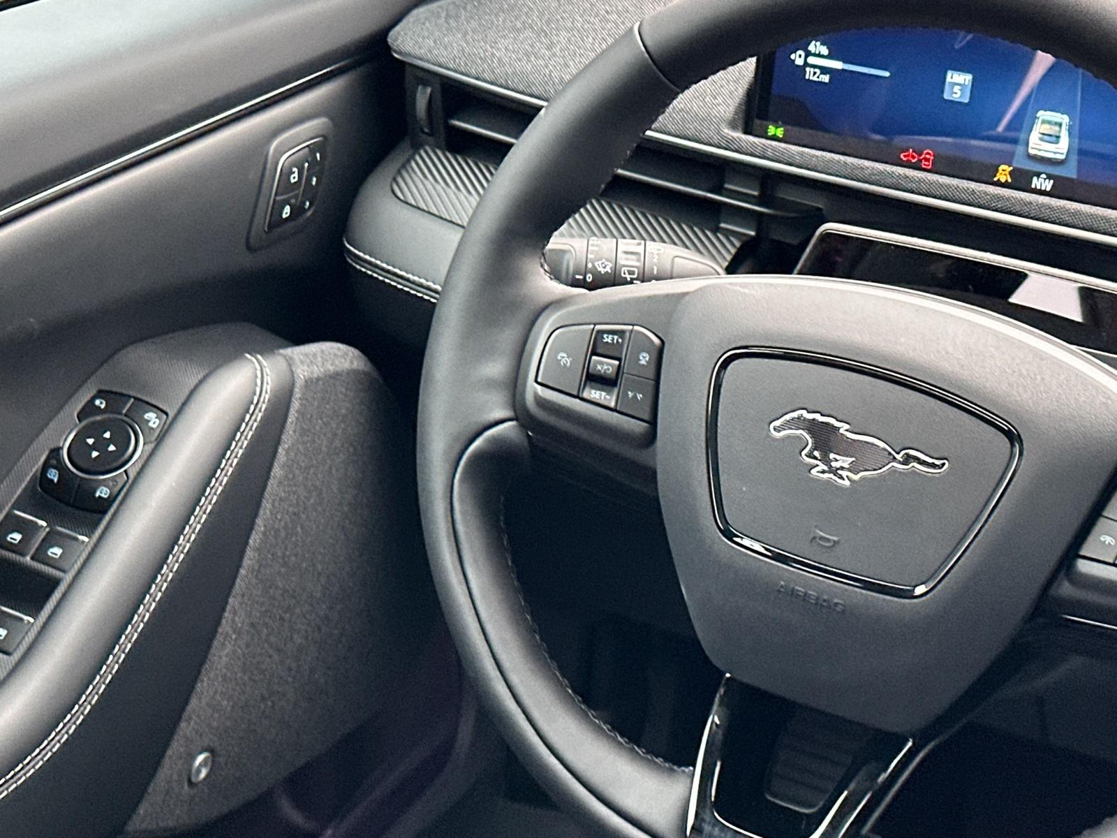 2025 Ford Mustang Mach-E PremiumEquipment Group 300A Standard Package, Ford Connectivity Package (One-Time Purchase) (Cellular Connectivity for Audio/Video Streaming), 10 Speakers, 4-Wheel Disc Brakes, ABS brakes, Air Conditioning, Alloy wheels, AM/FM radio: SiriusXM with 360L, Apple CarPlay/Android Auto, Auto High-beam Headlights, Auto-dimming Rear-View mirror, Automatic temperature control, BlueCruise Equipped (1-Year Plan), Brake assist, Bumpers: body-color, Compass, Delay-off headlights, Driver door bin, Driver vanity mirror, Dual front impact airbags, Dual front side impact airbags, Electronic Stability Control, Emergency communication system: 911 Assist, Exterior Parking Camera Rear, Four wheel independent suspension, Front anti-roll bar, Front Bucket Seats, Front Center Armrest, Front dual zone A/C, Front License Plate Bracket, Front reading lights, Fully automatic headlights, Garage door transmitter, Heated door mirrors, Heated front seats, Heated steering wheel, Heated/Ventilated Perforated ActiveX Bucket Seats, Illuminated entry, Knee airbag, Low tire pressure warning, Memory seat, Mobile Power Cord (120V/240V), NACS Fast Charging Adapter, Navigation system: Connected Navigation, Occupant sensing airbag, Outside temperature display, Overhead airbag, Overhead console, Panic alarm, Panoramic Fixed-Glass Roof, Passenger door bin, Passenger vanity mirror, Power door mirrors, Power driver seat, Power Liftgate, Power passenger seat, Power steering, Power windows, Radio data system, Radio: B&O Sound System by Bang & Olufsen, Rain sensing wipers, Rear anti-roll bar, Rear seat center armrest, Rear side impact airbag, Rear window defroster, Rear window wiper, Remote keyless entry, Security system, SiriusXM w/360L, Speed control, Speed-sensing steering, Speed-Sensitive Wipers, Split folding rear seat, Spoiler, Steering wheel mounted audio controls, SYNC 4A w/Enhanced Voice Recognition, Telescoping steering wheel, Tilt steering wheel, Tire Inflator & Sealant Kit, Traction control, Trip computer, Turn signal indicator mirrors, Variably intermittent wipers, Ventilated front seats, and Wheels: 19" Bright Machined-Face Aluminum.