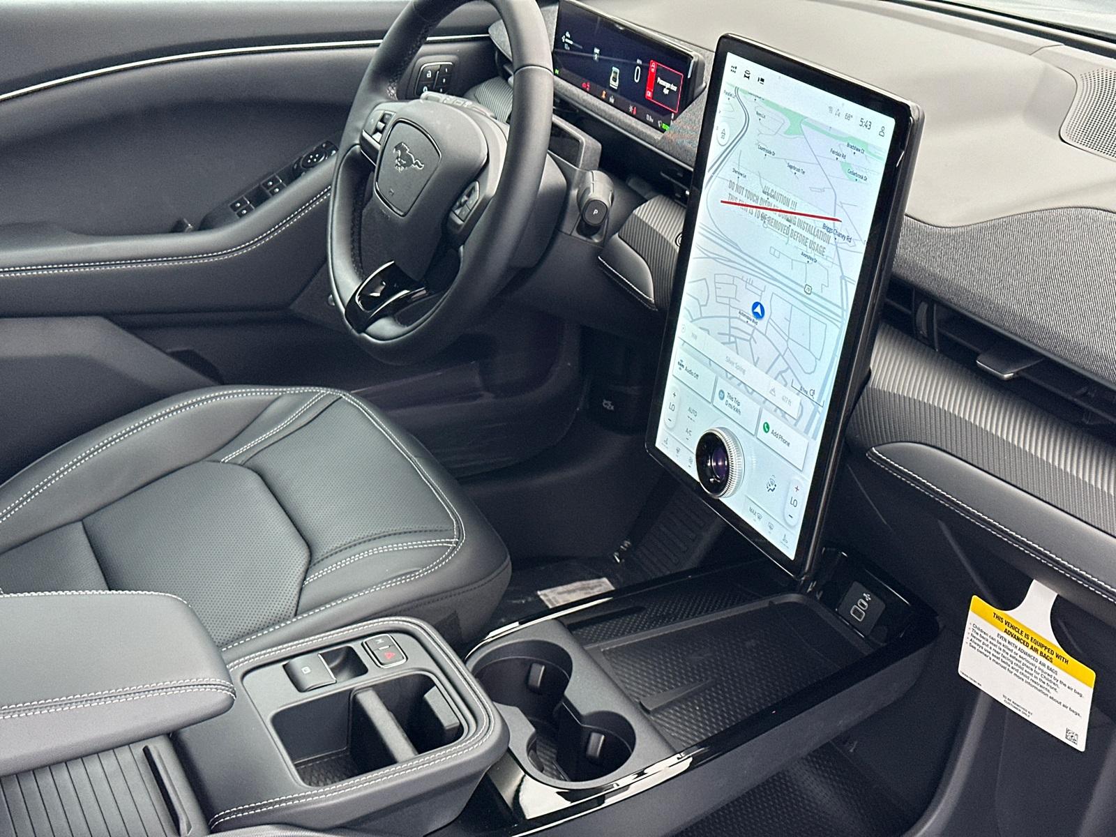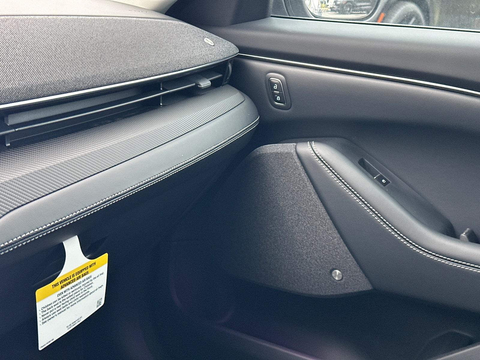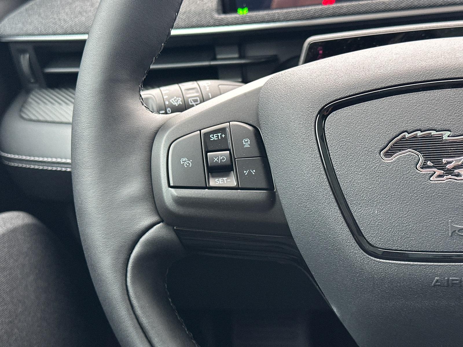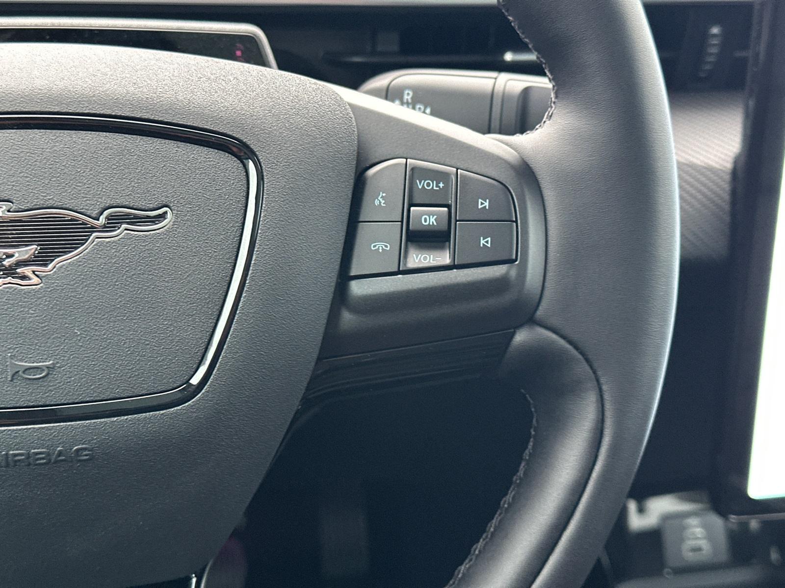 2025 Ford Mustang Mach-E PremiumEquipment Group 300A Standard Package, Ford Connectivity Package (One-Time Purchase) (Cellular Connectivity for Audio/Video Streaming), 10 Speakers, 4-Wheel Disc Brakes, ABS brakes, Air Conditioning, Alloy wheels, AM/FM radio: SiriusXM with 360L, Apple CarPlay/Android Auto, Auto High-beam Headlights, Auto-dimming Rear-View mirror, Automatic temperature control, BlueCruise Equipped (1-Year Plan), Brake assist, Bumpers: body-color, Compass, Delay-off headlights, Driver door bin, Driver vanity mirror, Dual front impact airbags, Dual front side impact airbags, Electronic Stability Control, Emergency communication system: 911 Assist, Exterior Parking Camera Rear, Four wheel independent suspension, Front anti-roll bar, Front Bucket Seats, Front Center Armrest, Front dual zone A/C, Front License Plate Bracket, Front reading lights, Fully automatic headlights, Garage door transmitter, Heated door mirrors, Heated front seats, Heated steering wheel, Heated/Ventilated Perforated ActiveX Bucket Seats, Illuminated entry, Knee airbag, Low tire pressure warning, Memory seat, Mobile Power Cord (120V/240V), NACS Fast Charging Adapter, Navigation system: Connected Navigation, Occupant sensing airbag, Outside temperature display, Overhead airbag, Overhead console, Panic alarm, Panoramic Fixed-Glass Roof, Passenger door bin, Passenger vanity mirror, Power door mirrors, Power driver seat, Power Liftgate, Power passenger seat, Power steering, Power windows, Radio data system, Radio: B&O Sound System by Bang & Olufsen, Rain sensing wipers, Rear anti-roll bar, Rear seat center armrest, Rear side impact airbag, Rear window defroster, Rear window wiper, Remote keyless entry, Security system, SiriusXM w/360L, Speed control, Speed-sensing steering, Speed-Sensitive Wipers, Split folding rear seat, Spoiler, Steering wheel mounted audio controls, SYNC 4A w/Enhanced Voice Recognition, Telescoping steering wheel, Tilt steering wheel, Tire Inflator & Sealant Kit, Traction control, Trip computer, Turn signal indicator mirrors, Variably intermittent wipers, Ventilated front seats, and Wheels: 19" Bright Machined-Face Aluminum.