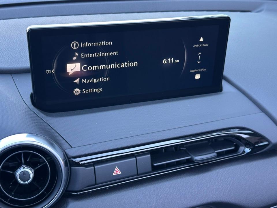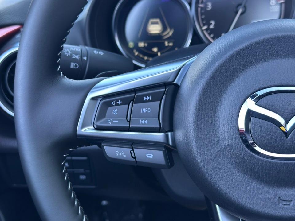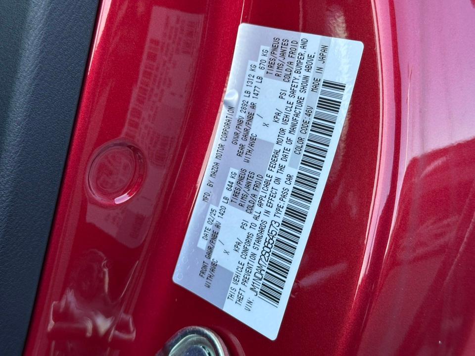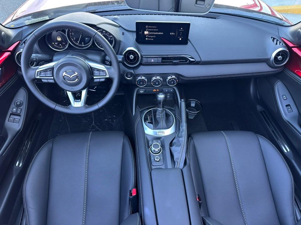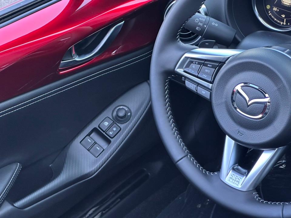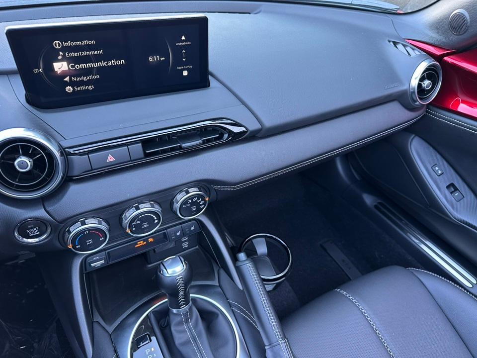 2025 Mazda MX-5 Miata RF Grand Touring4-Wheel Disc Brakes, 9 Speakers, ABS brakes, Air Conditioning, Alloy wheels, AM/FM radio: SiriusXM, AppLink/Apple CarPlay and Android Auto, Auto High-beam Headlights, Auto-dimming door mirrors, Auto-dimming Rear-View mirror, Automatic temperature control, Black Lug Nuts & Black Wheel Locks, Brake assist, Bumpers: body-color, Cargo Net, Convertible HardTop, Convertible roof lining, Convertible roof wind blocker, Delay-off headlights, Driver vanity mirror, Dual front impact airbags, Dual front side impact airbags, Electronic Stability Control, Emergency communication system: MAZDA CONNECT, Exterior Parking Camera Rear, Four wheel independent suspension, Front anti-roll bar, Front Bucket Seats, Front Center Armrest, Fully automatic headlights, Garage door transmitter: HomeLink, Glass rear window, Heated door mirrors, Heated Front Bucket Seats, Heated front seats, Illuminated entry, Leather Shift Knob, Leather-Trimmed Upholstery, Low tire pressure warning, MAZDA CONNECT Infotainment System, Navigation System, Occupant sensing airbag, Outside temperature display, Panic alarm, Passenger vanity mirror, Power convertible roof, Power door mirrors, Power steering, Power windows, Radio data system, Radio: Bose Audio System w/AudioPilot, Rain sensing wipers, Rear anti-roll bar, Rear window defroster, Remote keyless entry, Roadside Assistance Kit, Soul Red Crystal Metallic Paint Charge, Speed control, Speed-sensing steering, Sport steering wheel, Steering wheel mounted audio controls, Tachometer, Telescoping steering wheel, Tilt steering wheel, Traction control, Trip computer, Variably intermittent wipers, and Wheels: 17" Black Metallic Finish Alloy.