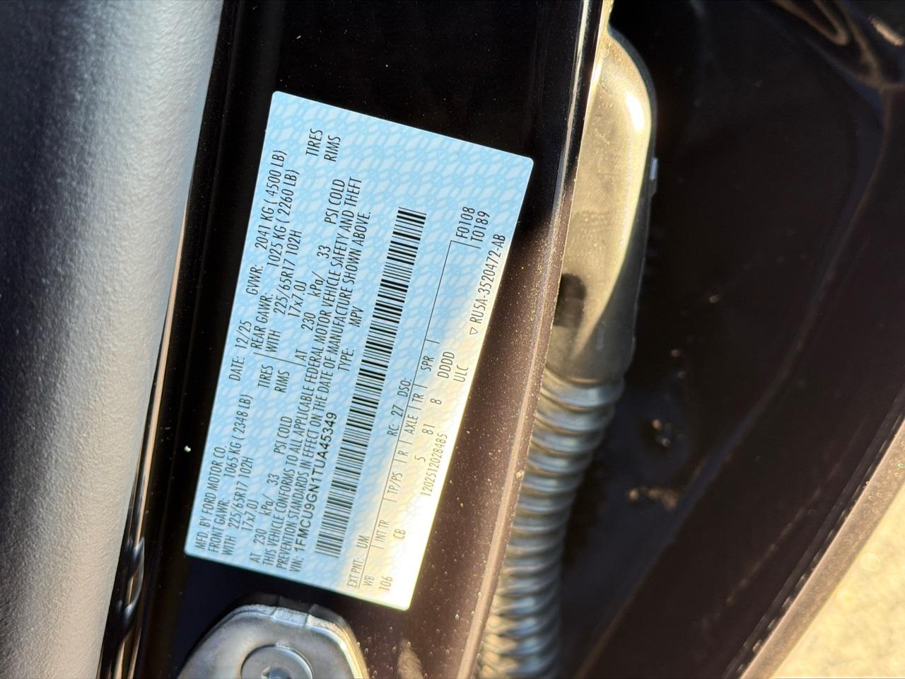 VIN #: 1FMCU9GN1TUA45349