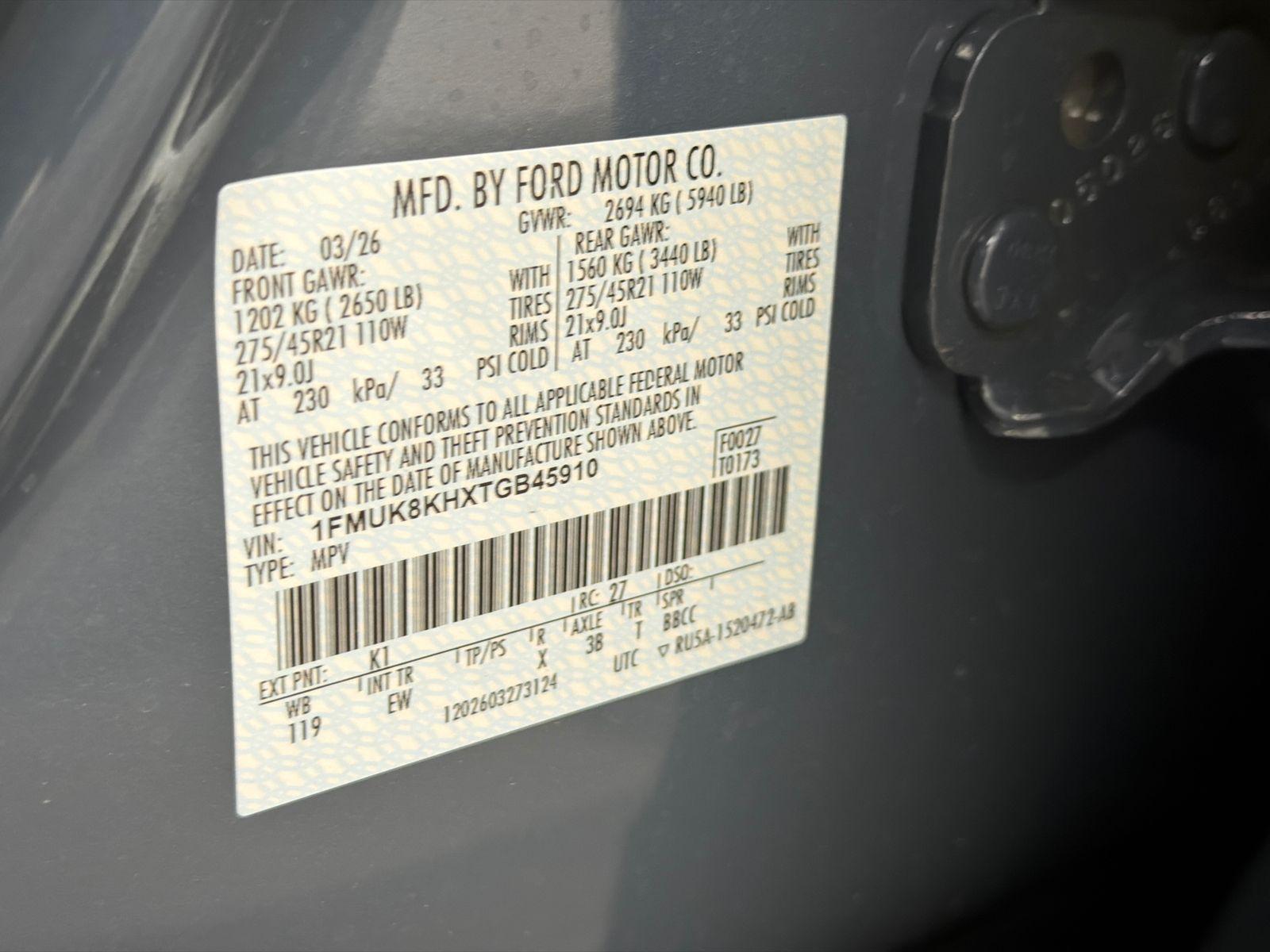 VIN #: 1FMUK8KHXTGB45910