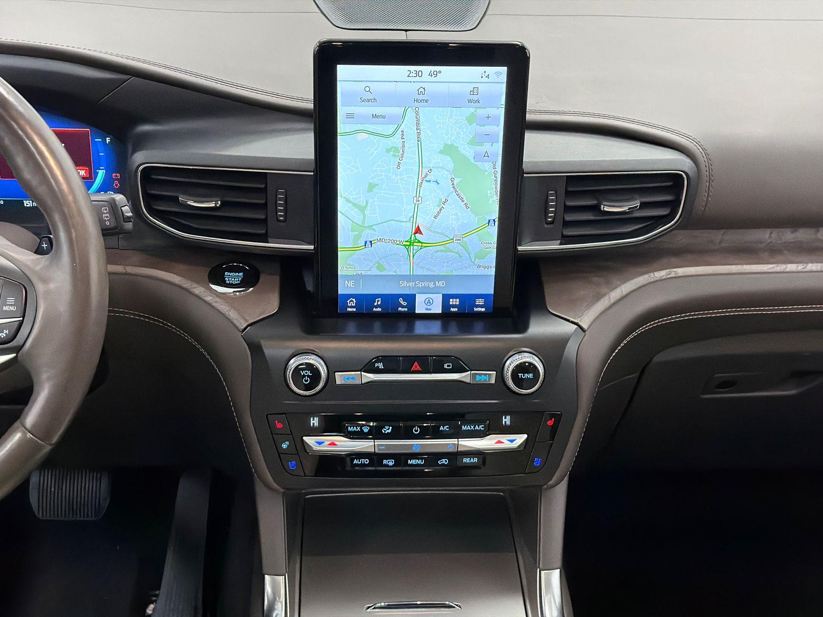 JUST TRADED IN. PREMIUM TECHNOLOGY PACKAGE, 2ND ROW BENCH. Explorer Platinum, 4D Sport Utility, 3.0L EcoBoost V6, 10-Speed Automatic, 4WD, Silver Spruce Metallic, Light Sandstone w/Leather Htd/Ventilated Sport Captain's Chairs or Leather Htd/Ventilated Sport Captain's Chairs, 10.1" LCD Capacitive Portrait Touchscreen, 2 Additional Speakers, Equipment Group 600A, Leather Htd/Ventilated Sport Captain's Chairs, Navigation System, Premium Technology Package. This vehicle has been equipped with our OPTIONAL dealer-installed Total Confidence Plus Package ($2,995), which includes: Loaner for Life, Digital Fraud Protection, Anti-Theft Vin Marking, Collision Loyalty Credit, Stolen Vehicle Assistance, Paint and Fabric Protection, 1st Oil Change, A/C Refresh Service, Rain Repellent, 7-Day Exchange (used only),Headlight Protection, 2nd Key & Remote, Full Tank of Gas, Nitrogen Tire Service, Door Edge & Cup Guards, Roadside Assistance Plan, $500 Coupon, Additional 1 Month/1,000 Mile Warranty (non-CPO used vehicles), and a Customer Welcome Kit with Customer Mobile App . This package is optional, not required by law, and not included in the advertised price. It may be purchased separately at the time of sale.