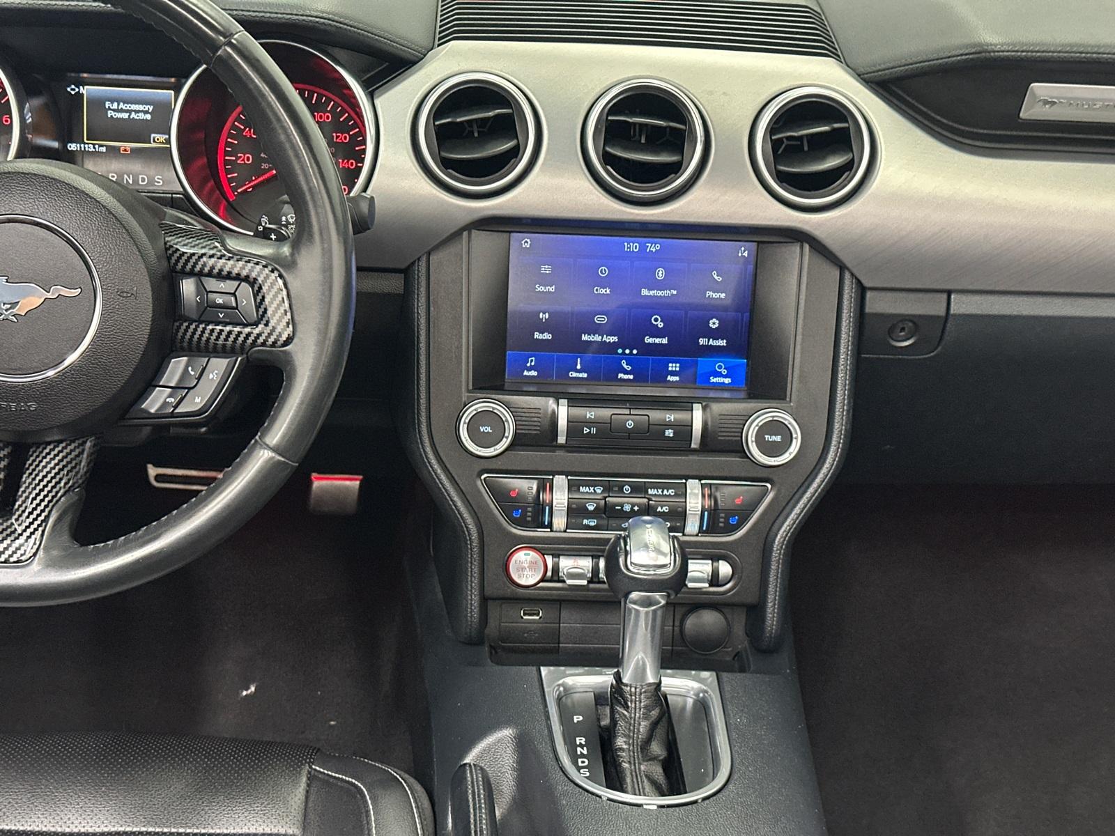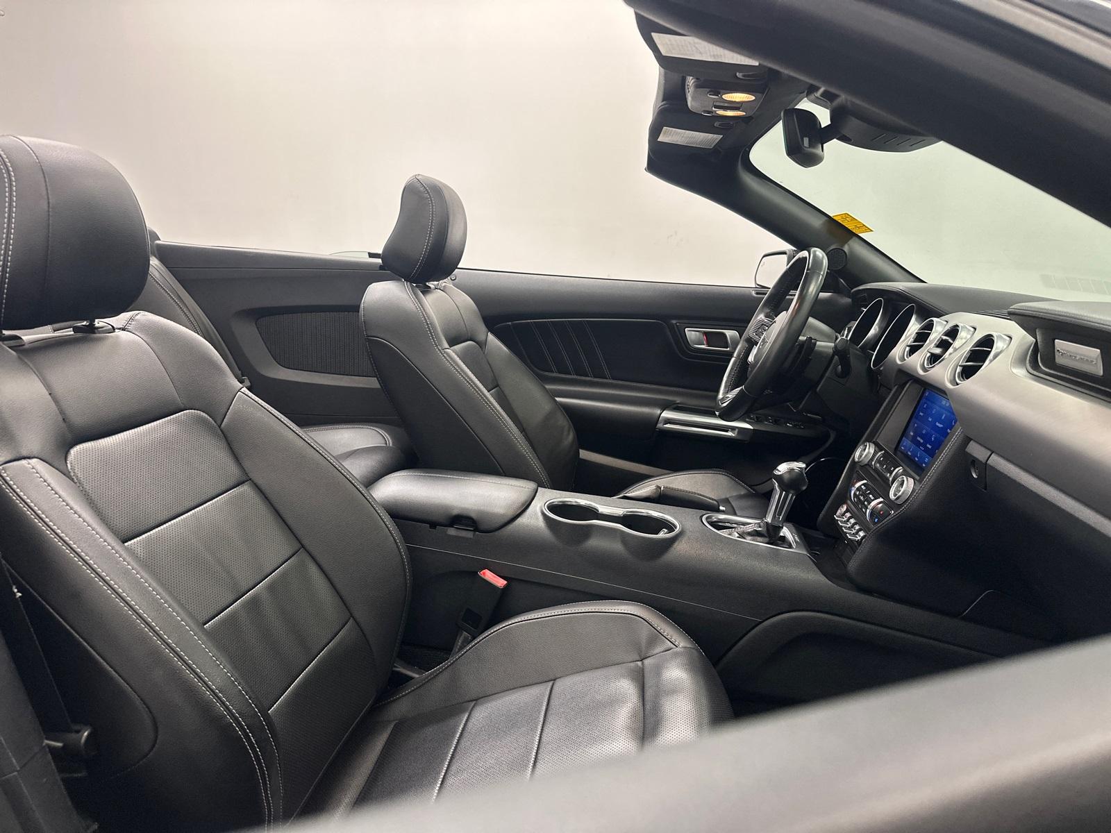 Mustang EcoBoost Premium, 2D Convertible, EcoBoost 2.3L I4 GTDi DOHC Turbocharged VCT, 9 Speakers, ActiveX Bucket Seats, Alloy wheels, AM/FM radio: SiriusXM, Auto High-beam Headlights, Auto-dimming Rear-View mirror, Automatic temperature control, Brake assist, Climate Controlled Heated/Cooled Front Seats, Delay-off headlights, Dual front impact airbags, Dual front side impact airbags, Electronic Stability Control, Emergency communication system: 911 Assist, Exterior Parking Camera Rear, Four wheel independent suspension, Front anti-roll bar, Front dual zone A/C, Front fog lights, Fully automatic headlights, Heated front seats, Knee airbag, Low tire pressure warning, Occupant sensing airbag, Power driver seat, Power passenger seat, Rear anti-roll bar, Remote keyless entry, Security system, SiriusXM Radio, Speed control, Speed-sensing steering, Steering wheel mounted audio controls, Traction control, Ventilated front seats.This vehicle has been equipped with our OPTIONAL dealer-installed Total Confidence Plus Package ($2,995), which includes: Loaner for Life, Digital Fraud Protection, Anti-Theft Vin Marking, Collision Loyalty Credit, Stolen Vehicle Assistance, Paint and Fabric Protection, 1st Oil Change, A/C Refresh Service, Rain Repellent, 7-Day Exchange (used only),Headlight Protection, 2nd Key & Remote, Full Tank of Gas, Nitrogen Tire Service, Door Edge & Cup Guards, Roadside Assistance Plan, $500 Coupon, Additional 1 Month/1,000 Mile Warranty (non-CPO used vehicles), and a Customer Welcome Kit with Customer Mobile App . This package is optional, not required by law, and not included in the advertised price. It may be purchased separately at the time of sale.