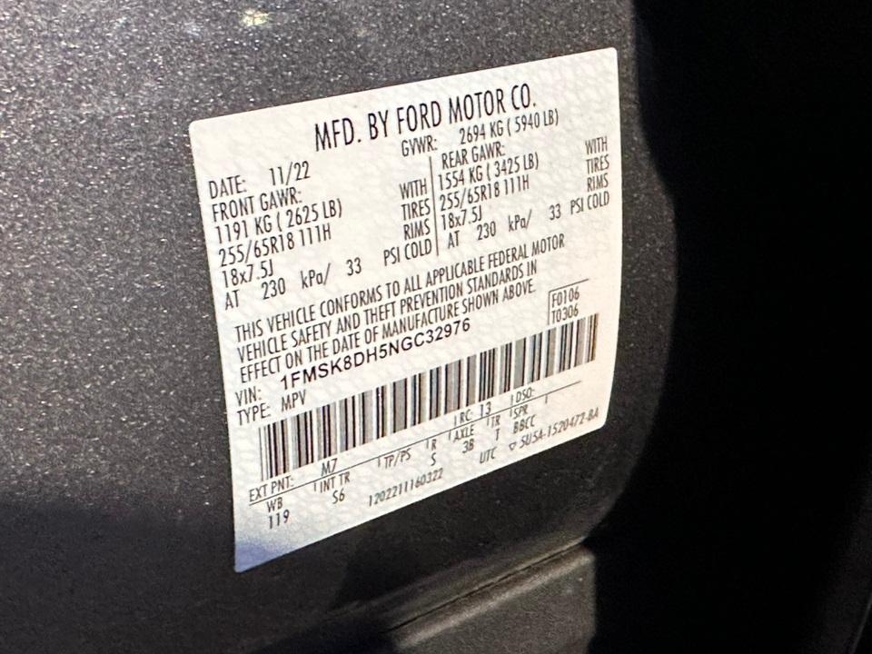 VIN #: 1FMSK8DH5NGC32976