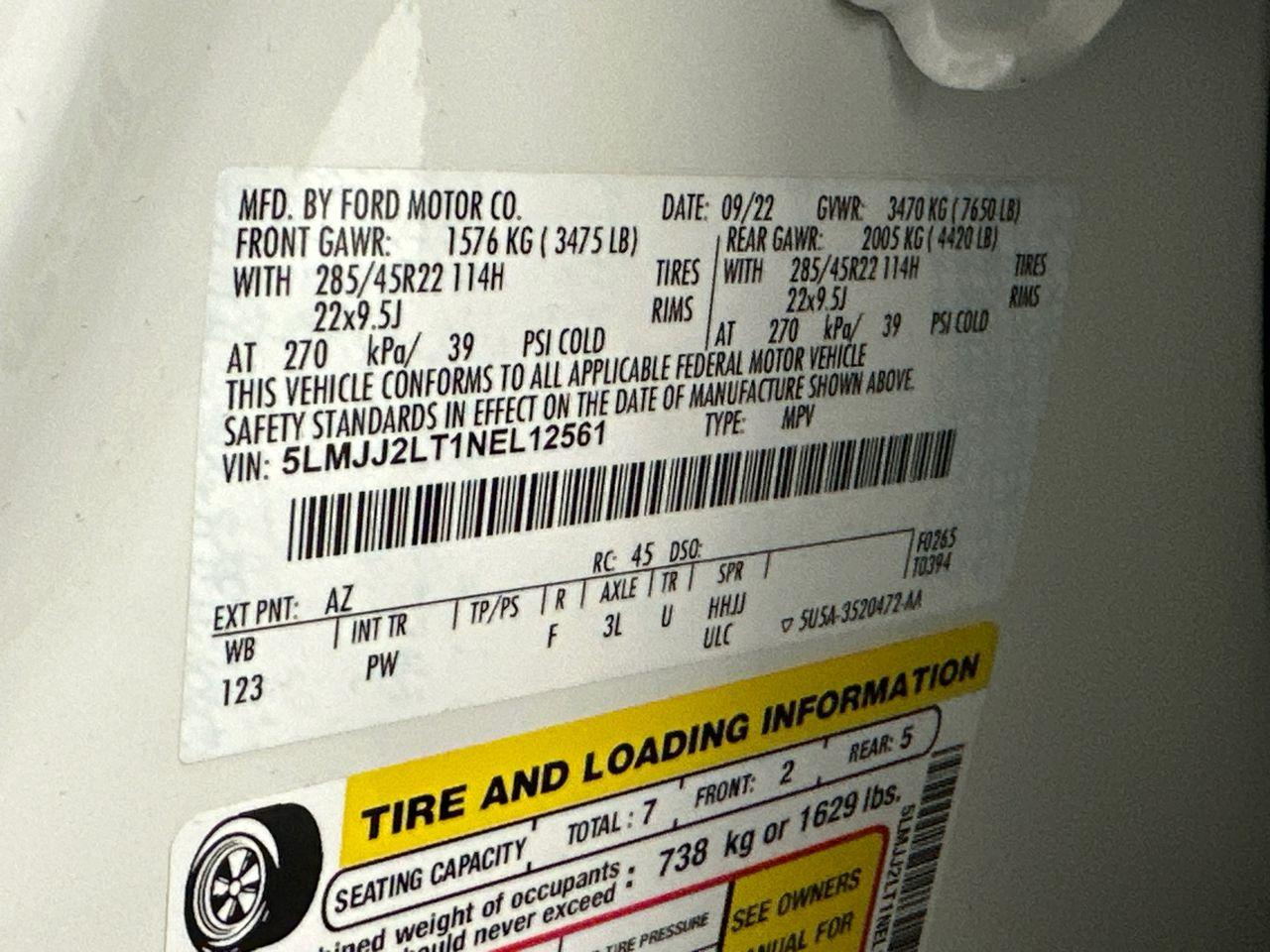 VIN #: 5LMJJ2LT1NEL12561