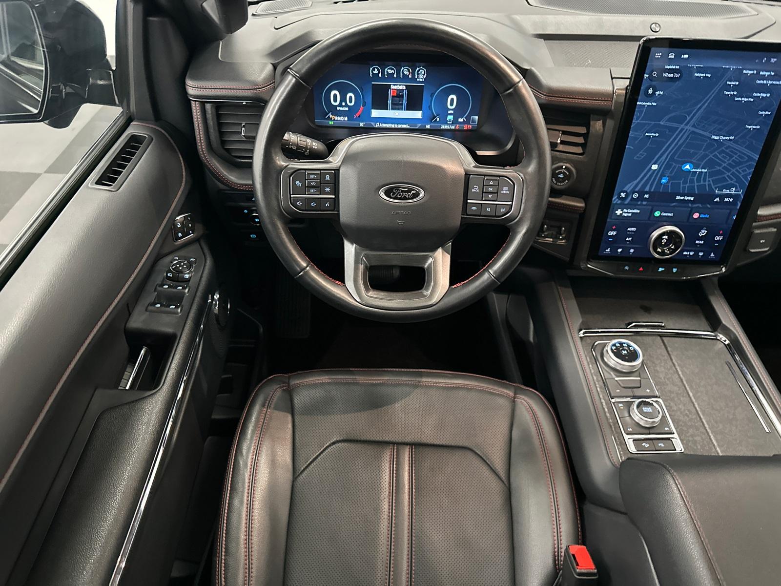 STEALTH PERFORMANCE PACKAGE, HEAVY DUTY TRAILER TOW PKG, 15.5 LCD SCREEN. Expedition Max Limited, 4D Sport Utility, 3.5L V6, 10-Speed Automatic, 4WD, Dark Matter Metallic, Black Onyx w/Heated/Ventilated Lthr Front Captain's Chairs, 1st & 2nd Row Floor Mats w/Logo, 26mm Engine Radiator, 3.73 Axle Ratio, 360-Degree Camera w/Trailer Reverse Guidance, Black Headlamp and Fog Lamp Bezels, Black Limited Tailgate Badge, Black Roof Rack Side Rails, Body Color Door Handles, Dual Exhaust System, Ebony Black Bar and Mesh Grille, Ebony Black Power Deployable Running Boards, Ebony Black Tailgate Applique, Enhanced Active Noise Control, Equipment Group 304A Stealth Performance Package, Expedition Lettering on Hood, Heated/Ventilated Lthr Front Captain's Chairs (A), Heavy-Duty Trailer Tow Package, Integrated Trailer Brake Controller, LED Taillamp w/Black Bezels, Power-Folding Sideview Mirrors w/Autofold, Pro Trailer Backup Assist, Radio: B&O Unleashed Sound System by Bang & Olufsen, Red Brake Calipers, SiriusXM w/360L, Sport Center Console, Sport-Tuned Suspension, Stealth Performance Edition Package, SYNC 4 w/Enhanced Voice Recognition, Wheels: 22" Premium Black-Painted Aluminum.