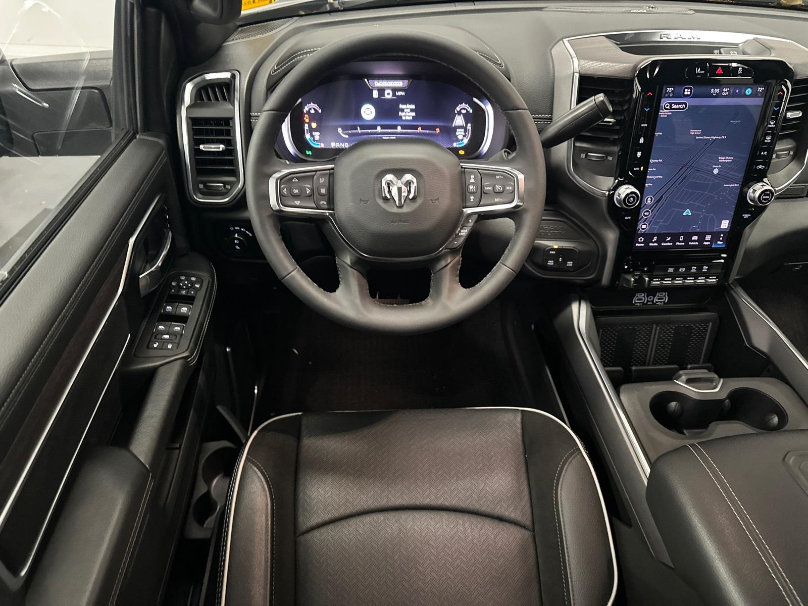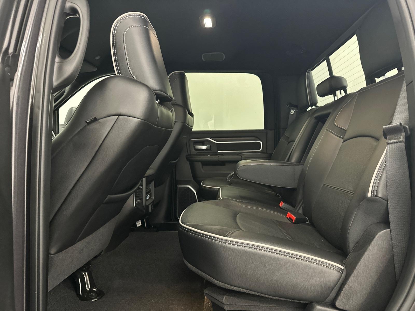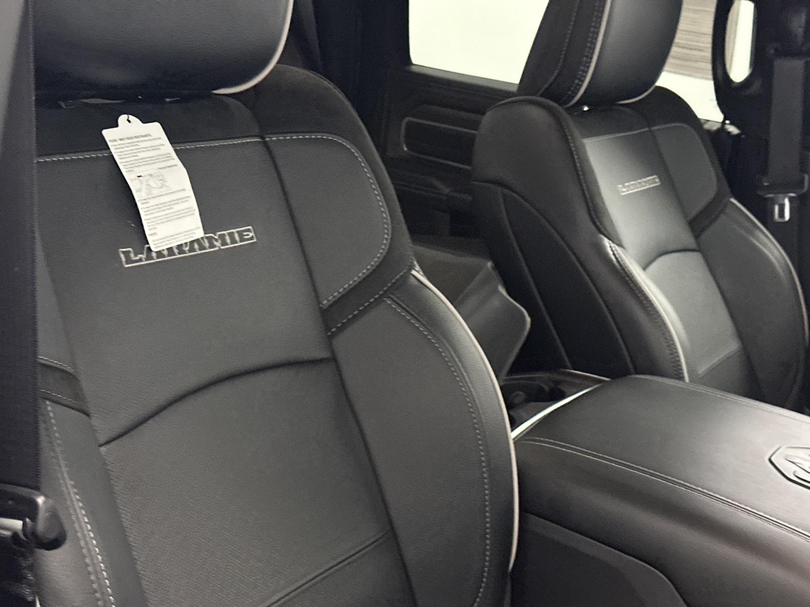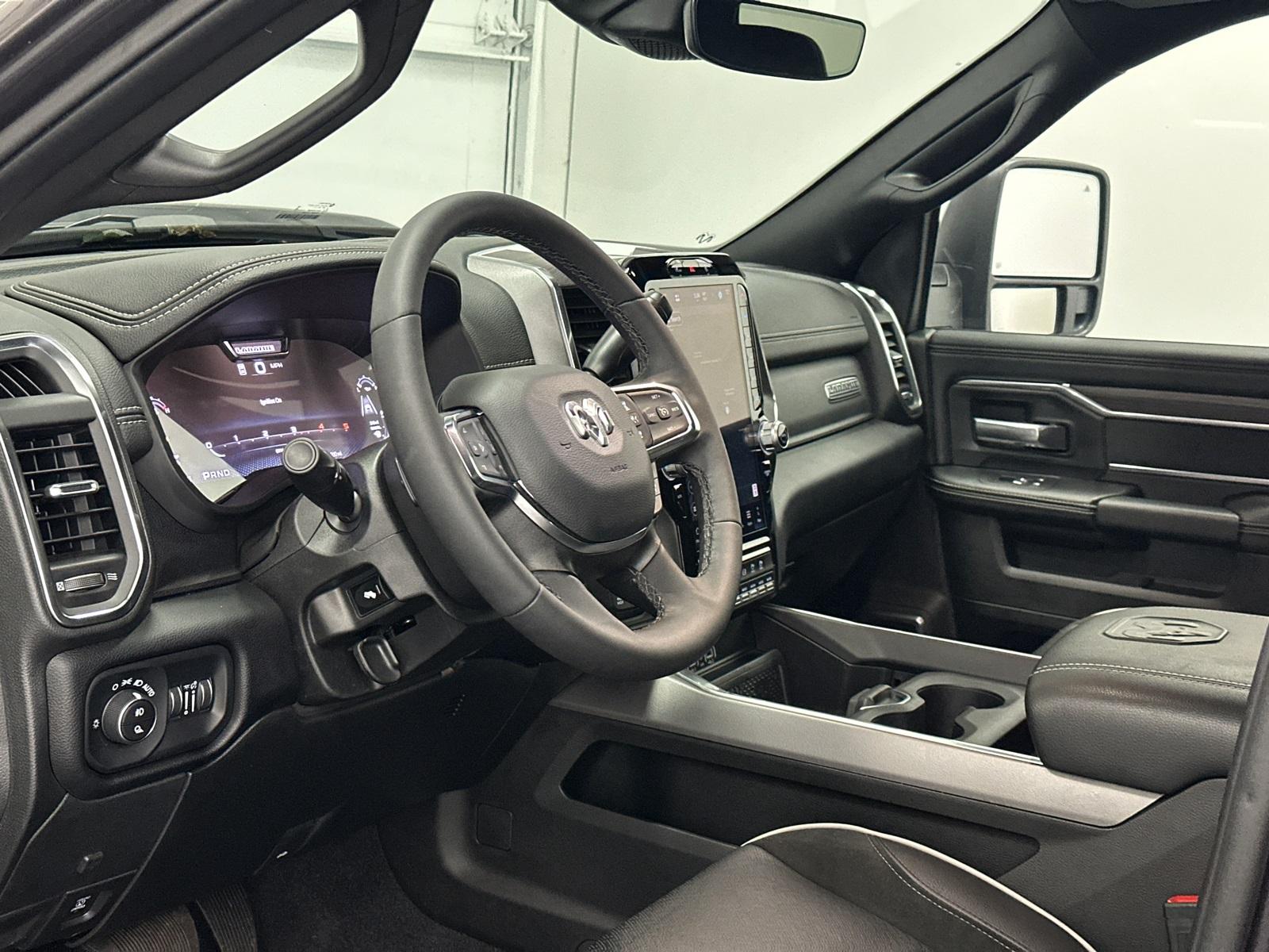 6.7L CUMMINS HO TURBO DIESEL ENGINE, NIGHT EDITION. 2500 Laramie, 4D Crew Cab, 6.7L I6, 8-Speed Automatic, 4WD, Granite Crystal Metallic Clearcoat, Black Leather, #1 Seat Foam Cushion, 115V Auxiliary Rear Power Outlet, 2 Way Rear Headrest Seat, 2nd Row In Floor Storage Bins, 4 Way Front Headrests, Active Lane Management System, Adaptive Steering System, Anti-Spin Differential Rear Axle, Auto Adjust In Reverse Exterior Mirrors, Auto Dim Exterior Mirror, Auto High Beam Headlamp Control, Auto Power-Folding Mirrors, Auto-Dimming Exterior Passenger Mirror, Black Exterior Mirrors, Black Exterior Truck Badging, Black Wheel Center Hub, Body Color Grille Surround, Bucket Seats, Chrome Exterior Mirrors, CTR Stop Lamp w/Cargo View Camera, Drowsy Driver Detection, Dual Wireless Charging Pad, Exterior Mirrors Courtesy Lamps, Exterior Mirrors w/Heating Element, Exterior Mirrors w/Memory, Exterior Mirrors w/Supplemental Signals, Foam Bottle Insert (Door Trim Panel), Folding Flat Load Floor Storage, Forward & Reverse Utility Lights, Front Seat Back Map Pockets, Full Length Upgraded Floor Console, Gloss Black Grille Billets/Accents, Heated Front Seats, Heated Steering Wheel, High Back Seats, Laramie Level 1 Plus Equipment Group, Leather Trimmed Bucket Seats, LED Bed Lighting, Mirror Running Lights, MOPAR Deployable Bed Step, MOPAR Spray In Bedliner, Night Edition, Power 2-Way Driver Lumbar Adjust, Power 2-Way Passenger Lumbar Adjust, Power Adjust 8-Way Driver Seat, Power Adjust 8-Way Front Passenger Seat, Power Adjust Mirrors, Power Adjustable Convex Aux Mirrors, Power Adjustable Pedals w/Memory, Power Heated Fold Telescopic Mirrors w/Memory, Power Telescoping Mirrors, Quick Order Package 24H Laramie, Rain Sensitive Windshield Wipers, Rear 60/40 Folding Seat, Remote Tailgate Release, Sport Performance Hood, Traffic Sign Recognition, Wheels: 20" x 8.0" Black Painted Aluminum.