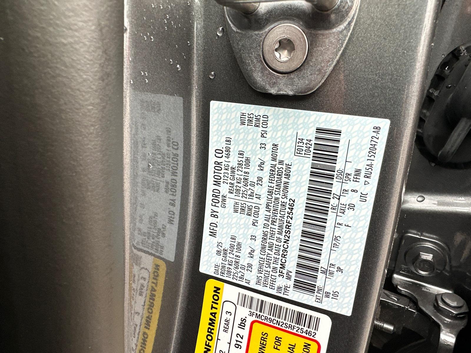 VIN #: 3FMCR9CN2SRF25462