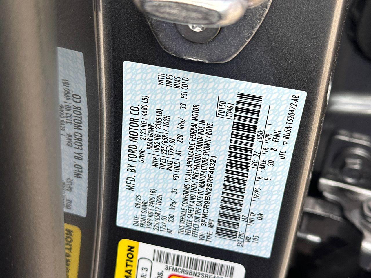 VIN #: 3FMCR9BN2SRF40321
