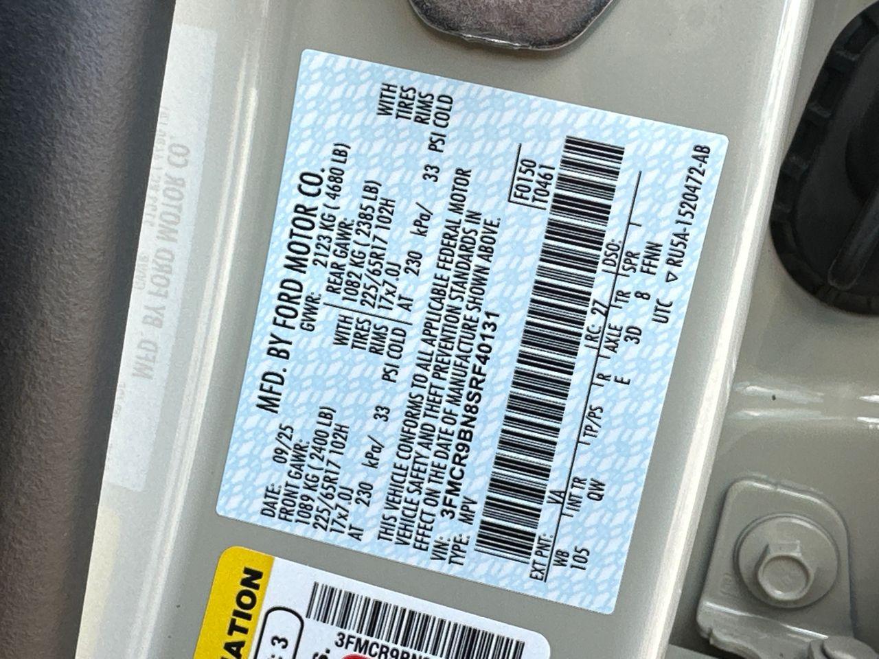 VIN #: 3FMCR9BN8SRF40131