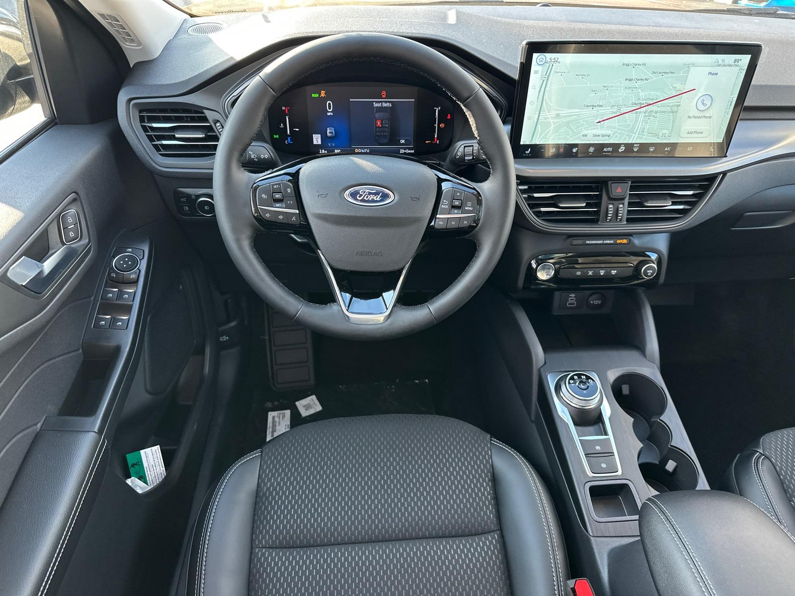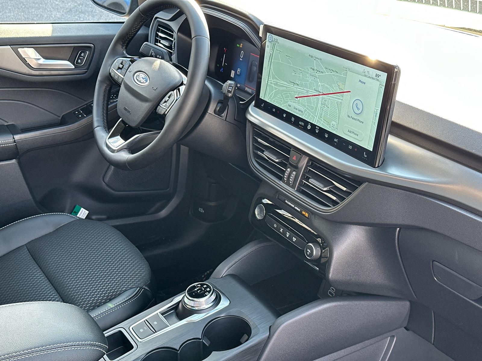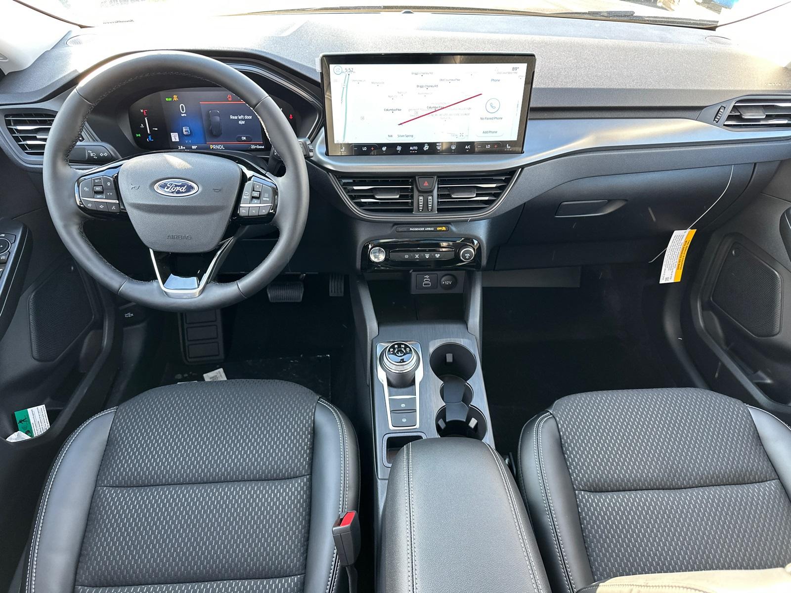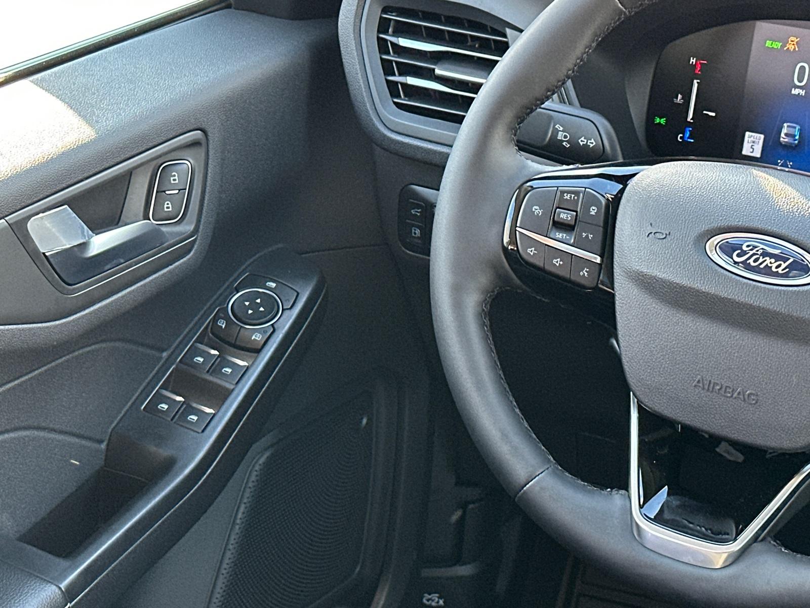 2025 Ford Escape Plug-In HybridEquipment Group 700A, 2.5L iVCT, 2.91 Axle Ratio, 4-Wheel Disc Brakes, 6 Speakers, ABS brakes, Air Conditioning, Alloy wheels, AM/FM radio: SiriusXM, AM/FM Stereo, Auto High-beam Headlights, Automatic temperature control, Black Roof-Rack Side Rails, Brake assist, Bumpers: body-color, Compass, Delay-off headlights, Driver door bin, Driver vanity mirror, Dual front impact airbags, Dual front side impact airbags, Electronic Stability Control, Emergency communication system: SYNC 4 911 Assist, FordPass Connect, Four wheel independent suspension, Front anti-roll bar, Front Bucket Seats, Front Center Armrest, Front dual zone A/C, Front fog lights, Front License Plate Bracket, Front reading lights, Fully automatic headlights, Heated door mirrors, Heated front seats, Heated steering wheel, Heated Vinyl/Cloth Front Sport Contour Bucket Seats, Illuminated entry, Knee airbag, Low tire pressure warning, Navigation system: Connected Navigation, Occupant sensing airbag, Outside temperature display, Overhead airbag, Overhead console, Panic alarm, Panoramic Vista Roof, Passenger door bin, Passenger vanity mirror, Power door mirrors, Power driver seat, Power Liftgate, Power steering, Power windows, Radio data system, Rear anti-roll bar, Rear reading lights, Rear seat center armrest, Rear window defroster, Rear window wiper, Remote keyless entry, Speed control, Speed-sensing steering, Speed-Sensitive Wipers, Split folding rear seat, Spoiler, Steering wheel mounted audio controls, SYNC 4 w/Enhanced Voice Recognition, Telescoping steering wheel, Tilt steering wheel, Traction control, Trip computer, Variably intermittent wipers, and Wheels: 18" Machined-Face Magnetic Aluminum.