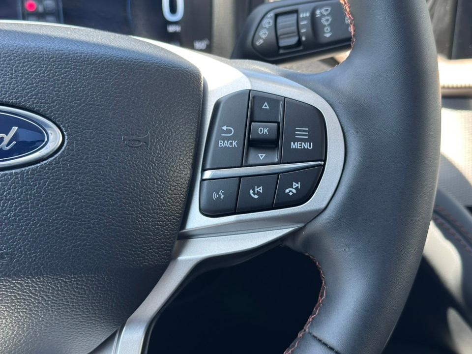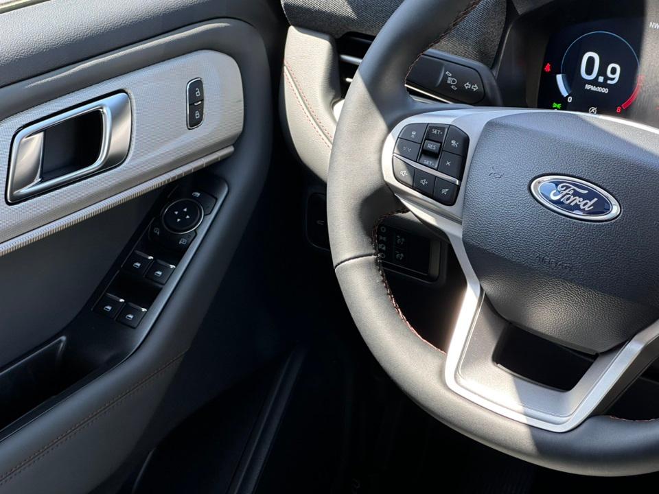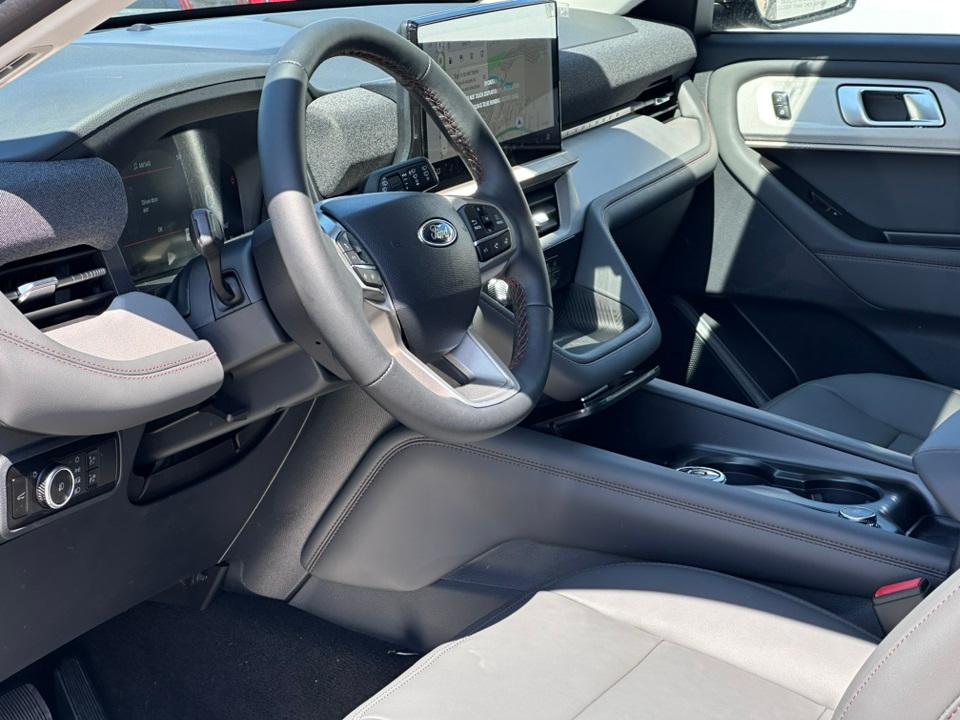 2025 Ford Explorer ActiveActive Comfort Package (Front Fascia, Heated ActiveX Seating Material Captain's Chairs, Heated Steering Wheel, Remote Start System, Second Row HVAC Controls, and Universal Garage Door Opener (UGDO)), Equipment Group 200A Standard Package, 4WD, 3.58 Non-Limited Slip Rear Axle, 3rd row seats: bench, 4-Wheel Disc Brakes, 6 Speakers, ABS brakes, Air Conditioning, Alloy wheels, AM/FM radio: SiriusXM with 360L, AM/FM Stereo, Apple CarPlay/Android Auto, Auto High-beam Headlights, Automatic temperature control, Brake assist, Bumpers: body-color, Compass, Delay-off headlights, Driver door bin, Driver vanity mirror, Dual front impact airbags, Dual front side impact airbags, Electronic Stability Control, Emergency communication system: 911 Assist, Exterior Parking Camera Rear, Four wheel independent suspension, Front anti-roll bar, Front Bucket Seats, Front Center Armrest, Front dual zone A/C, Front License Plate Bracket, Front reading lights, Fully automatic headlights, Heated door mirrors, Heated front seats, Illuminated entry, Knee airbag, Leather steering wheel, Low tire pressure warning, Navigation System, Occupant sensing airbag, Outside temperature display, Overhead airbag, Overhead console, Panic alarm, Panoramic Vista Roof w/Power Shade, Passenger door bin, Passenger vanity mirror, Power door mirrors, Power driver seat, Power Liftgate, Power passenger seat, Power steering, Power windows, Rear air conditioning, Rear anti-roll bar, Rear reading lights, Rear window defroster, Rear window wiper, Remote keyless entry, Security system, Speed control, Speed-sensing steering, Speed-Sensitive Wipers, Split folding rear seat, Spoiler, Steering wheel mounted audio controls, Tachometer, Telescoping steering wheel, Tilt steering wheel, Traction control, Trip computer, Unique Heated Cloth Captain's Chairs, Variably intermittent wipers, Wheels: 18" Sparkle Silver-Painted Aluminum, and Wheels: 20" Carbonized Gray-Painted Aluminum.