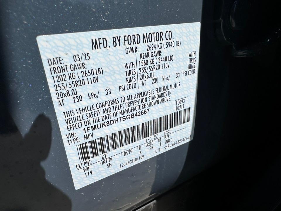 VIN #: 1FMUK8DH7SGB42667