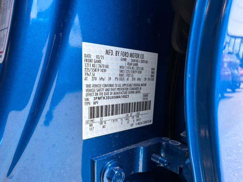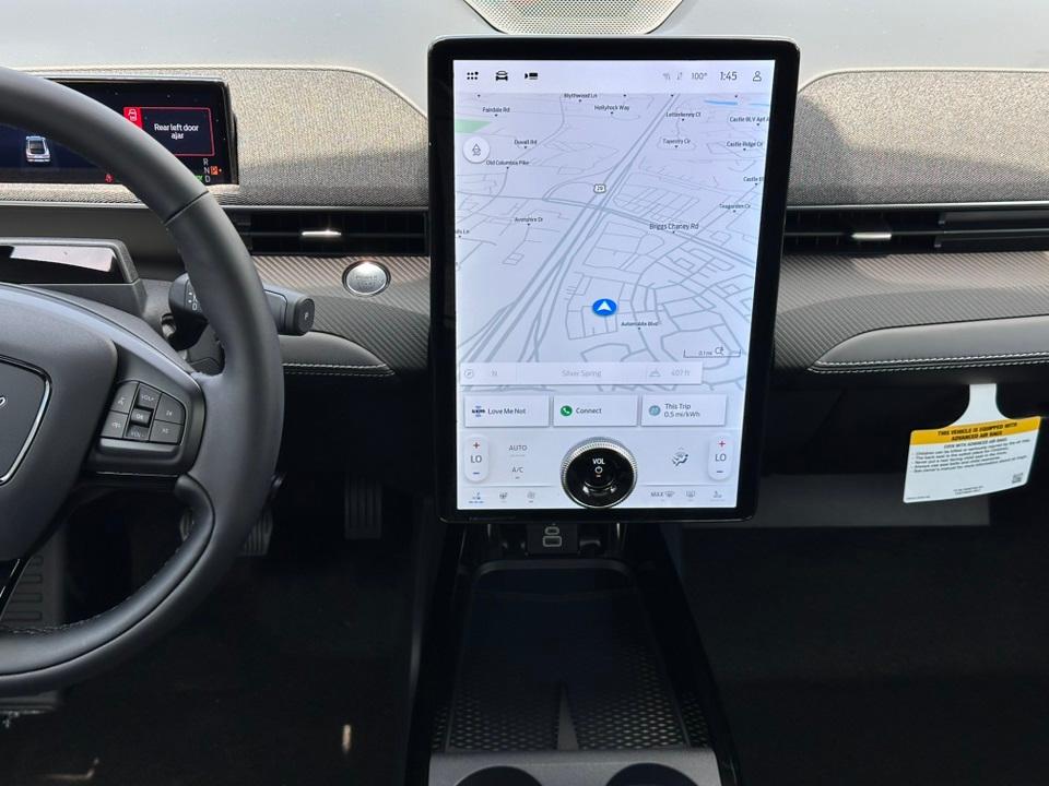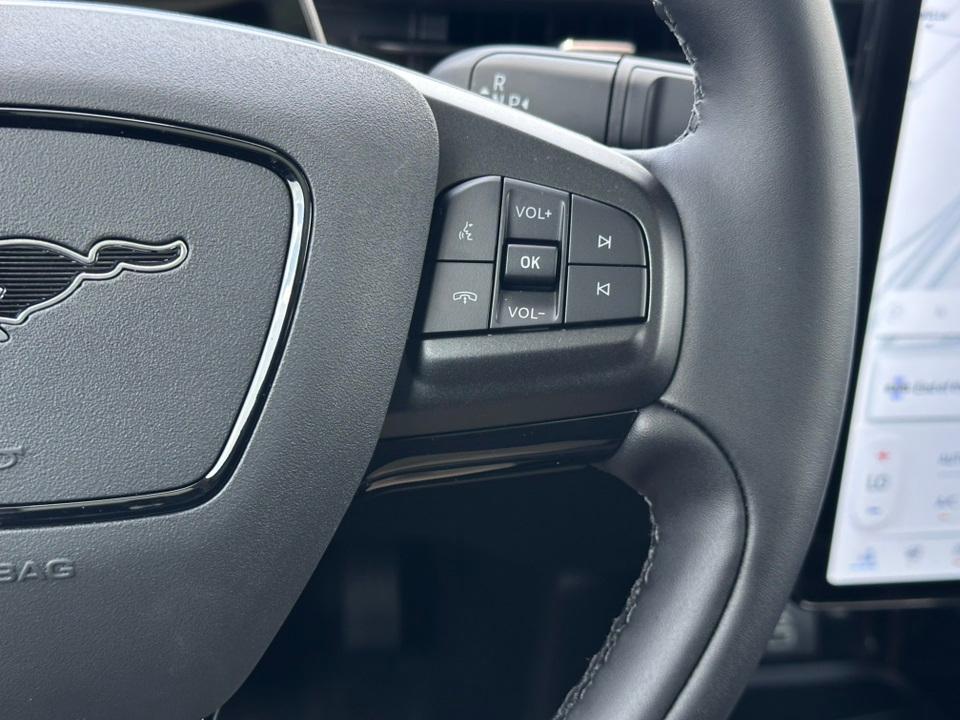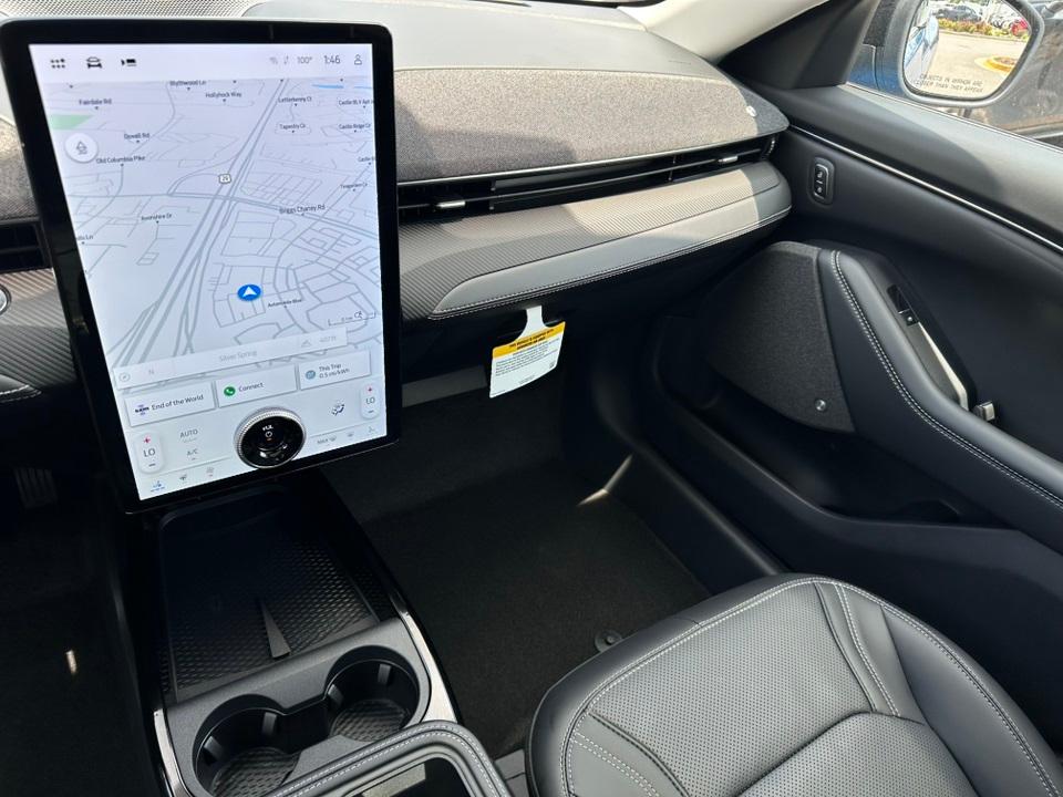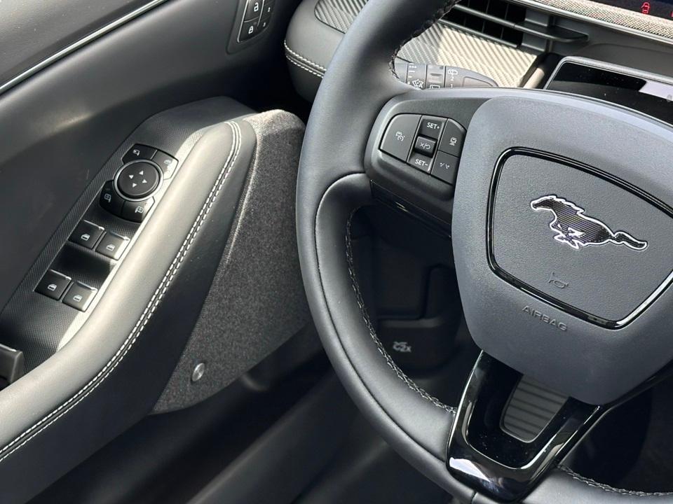 2025 Ford Mustang Mach-E PremiumEquipment Group 300A Standard Package, Interior Protection Package (1st & 2nd Row Floor Liners w/o Carpet Mats, Cargo Area Cover, and Cargo Floor Liner), 10 Speakers, 4-Wheel Disc Brakes, ABS brakes, Air Conditioning, Alloy wheels, AM/FM radio: SiriusXM with 360L, Apple CarPlay/Android Auto, Auto High-beam Headlights, Auto-dimming Rear-View mirror, Automatic temperature control, Brake assist, Bumpers: body-color, Compass, Delay-off headlights, Driver door bin, Driver vanity mirror, Dual front impact airbags, Dual front side impact airbags, Electronic Stability Control, Emergency communication system: 911 Assist, Exterior Parking Camera Rear, Four wheel independent suspension, Front anti-roll bar, Front Bucket Seats, Front Center Armrest, Front dual zone A/C, Front License Plate Bracket, Front reading lights, Fully automatic headlights, Garage door transmitter, Heated door mirrors, Heated front seats, Heated steering wheel, Heated/Ventilated Perforated ActiveX Bucket Seats, Illuminated entry, Knee airbag, Low tire pressure warning, Memory seat, Mobile Power Cord (120V/240V), Navigation system: Connected Navigation, Occupant sensing airbag, Outside temperature display, Overhead airbag, Overhead console, Panic alarm, Panoramic Fixed-Glass Roof, Passenger door bin, Passenger vanity mirror, Power door mirrors, Power driver seat, Power Liftgate, Power passenger seat, Power steering, Power windows, Radio data system, Radio: B&O Sound System by Bang & Olufsen, Rain sensing wipers, Rear anti-roll bar, Rear seat center armrest, Rear side impact airbag, Rear window defroster, Rear window wiper, Remote keyless entry, Security system, SiriusXM w/360L, Speed control, Speed-sensing steering, Speed-Sensitive Wipers, Split folding rear seat, Spoiler, Steering wheel mounted audio controls, SYNC 4A w/Enhanced Voice Recognition, Telescoping steering wheel, Tilt steering wheel, Traction control, Trip computer, Turn signal indicator mirrors, Variably intermittent wipers, Ventilated front seats, Wheels: 19" Bright Machined Face Aluminum, and Wheels: 19" Bright Machined-Face Aluminum.