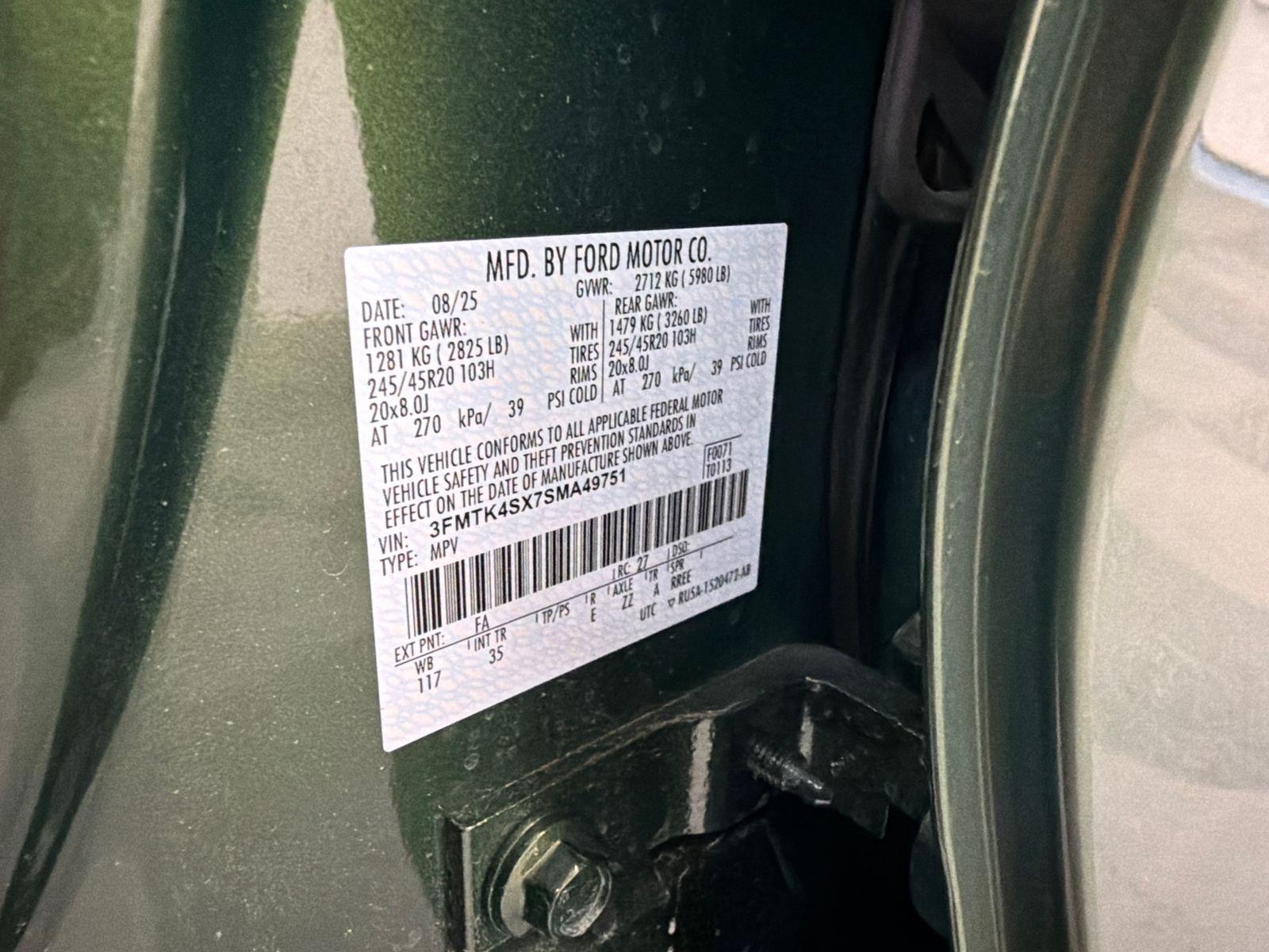 2025 Ford Mustang Mach-EThis vehicle has been equipped with our OPTIONAL dealer-installed Total Confidence Plus Package ($2,995), which includes: Loaner for Life, Digital Fraud Protection, Anti-Theft Vin Marking, Collision Loyalty Credit, Stolen Vehicle Assistance, Paint and Fabric Protection, 1st Oil Change, A/C Refresh Service, Rain Repellent, 7-Day Exchange (used only),Headlight Protection, 2nd Key & Remote, Full Tank of Gas, Nitrogen Tire Service, Door Edge & Cup Guards, Roadside Assistance Plan, $500 Coupon, Additional 1 Month/1,000 Mile Warranty (non-CPO used vehicles), and a Customer Welcome Kit with Customer Mobile App . This package is optional, not required by law, and not included in the advertised price. It may be purchased separately at the time of sale.