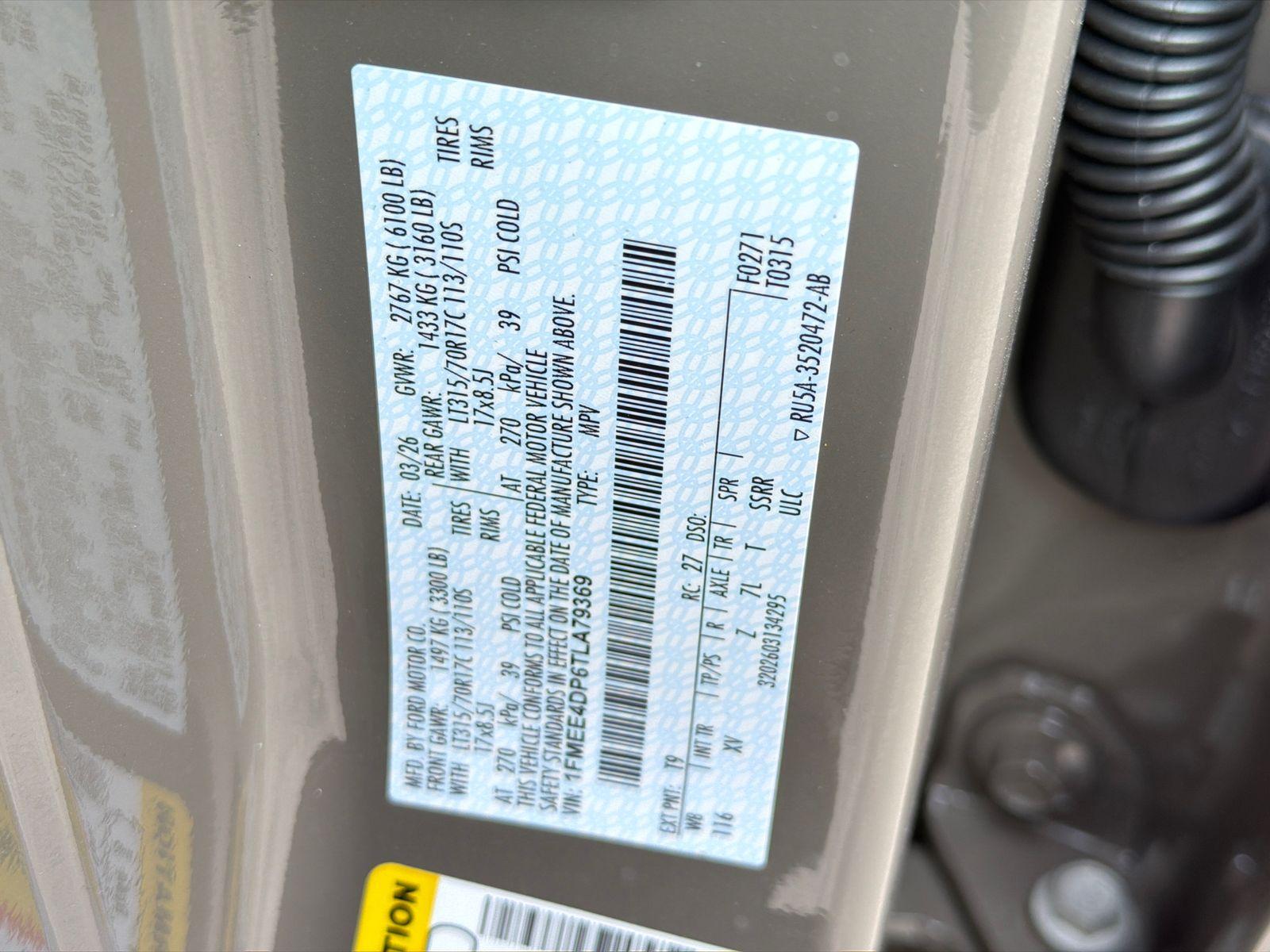 VIN #: 1FMEE4DP6TLA79369
