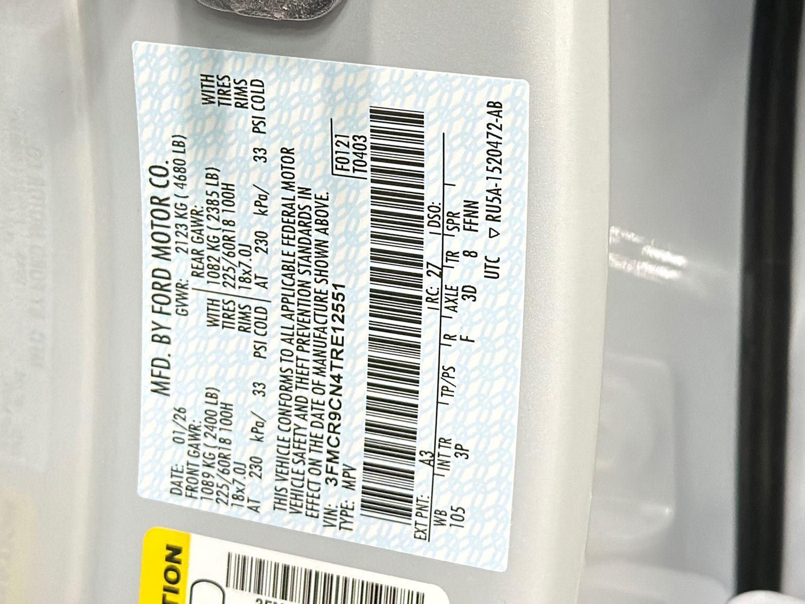VIN #: 3FMCR9CN4TRE12551
