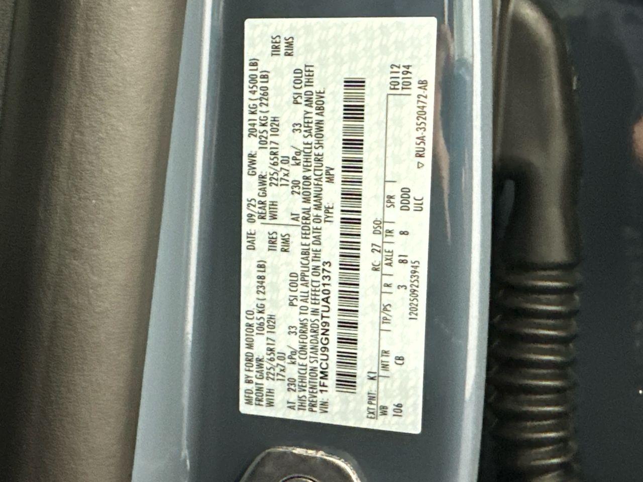 VIN #: 1FMCU9GN9TUA01373