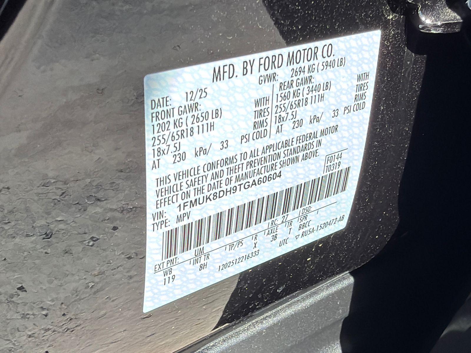 VIN #: 1FMUK8DH9TGA60604
