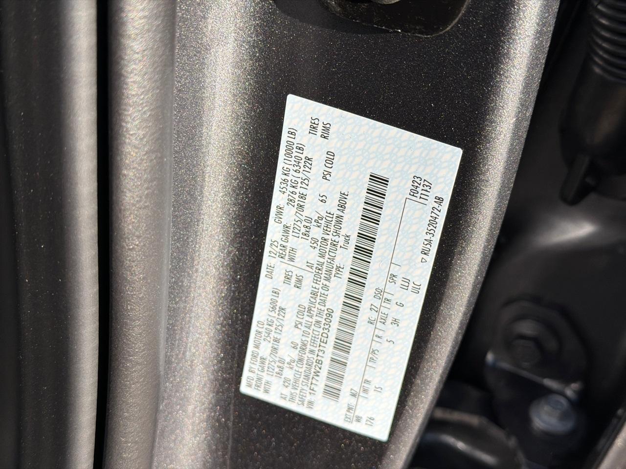 VIN #: 1FT7W2BT3TED33090