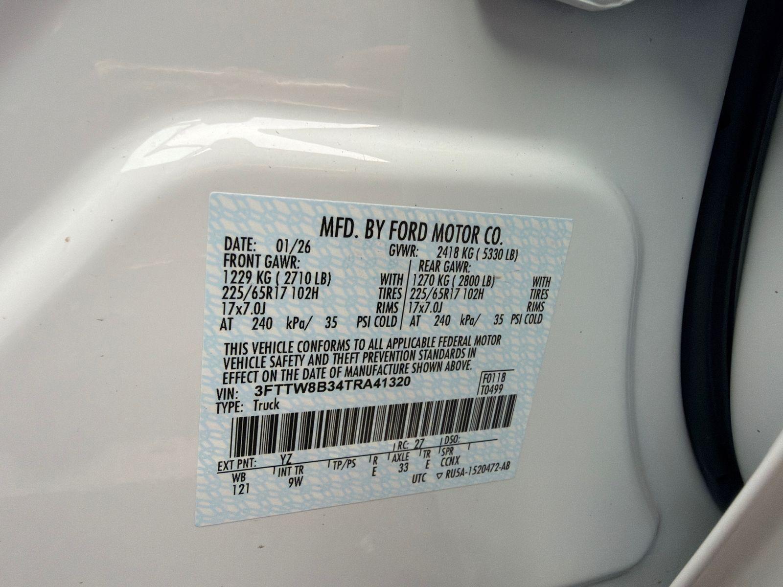 VIN #:  3FTTW8B34TRA41320