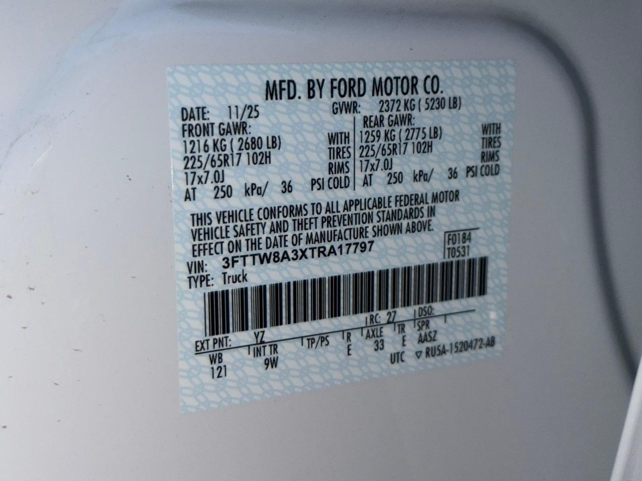 VIN #: 3FTTW8A3XTRA17797