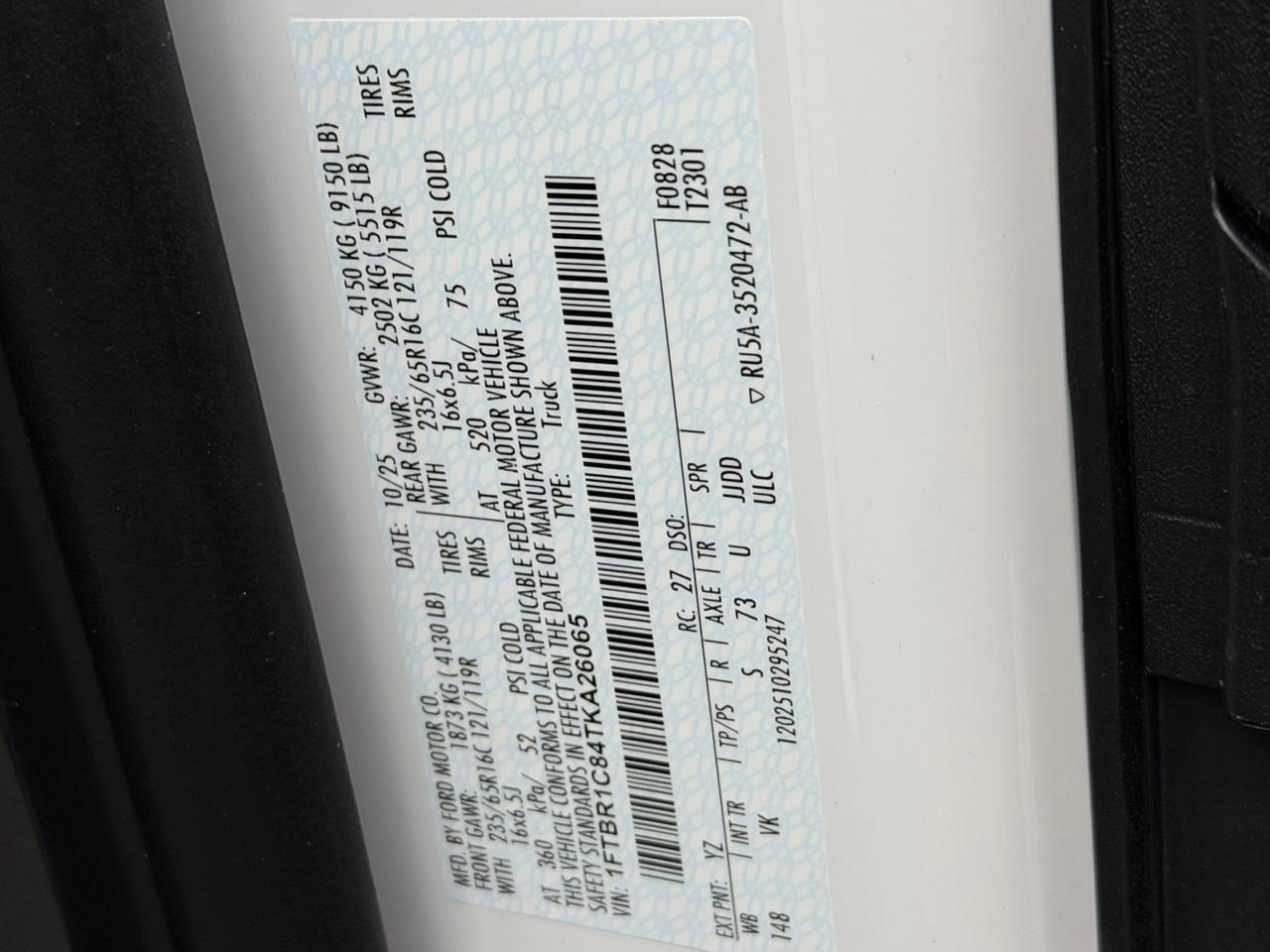 VIN #: 1FTBR1C84TKA26065