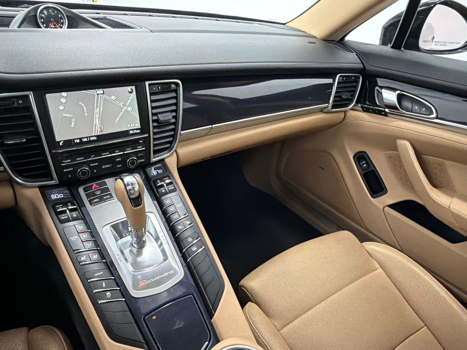 JUST TRADED IN! PREMIUM PACKAGE PLUS! Panamera 4, 3.6L V6 DI 24V, 7-Speed Porsche Doppelkupplung (PDK), Black, Bi-Color Black/Luxor Beige w/Partial-Leather Seat Trim, 14-Way Comfort-Memory-Package, ABS brakes, Alloy wheels, Bi-Xenon-Headlights w/PDLS, Compass, DVD-Audio, Electronic Stability Control, Front & Rear Park Assist w/Reversing Camera, Front dual zone A/C, Front Seat Ventilation, Heated door mirrors, Heated front seats, Illuminated entry, Low tire pressure warning, Navigation System, Porsche Active Suspension Management System, Porsche Communication Management w/Navigation, Power Liftgate, Power moonroof, Premium Package Plus, Remote keyless entry, Traction control. This vehicle has been equipped with our OPTIONAL dealer-installed Total Confidence Plus Package ($2,995), which includes: Loaner for Life, Digital Fraud Protection, Anti-Theft Vin Marking, Collision Loyalty Credit, Stolen Vehicle Assistance, Paint and Fabric Protection, 1st Oil Change, A/C Refresh Service, Rain Repellent, 7-Day Exchange (used only),Headlight Protection, 2nd Key & Remote, Full Tank of Gas, Nitrogen Tire Service, Door Edge & Cup Guards, Roadside Assistance Plan, $500 Coupon, Additional 1 Month/1,000 Mile Warranty (non-CPO used vehicles), and a Customer Welcome Kit with Customer Mobile App . This package is optional, not required by law, and not included in the advertised price. It may be purchased separately at the time of sale.