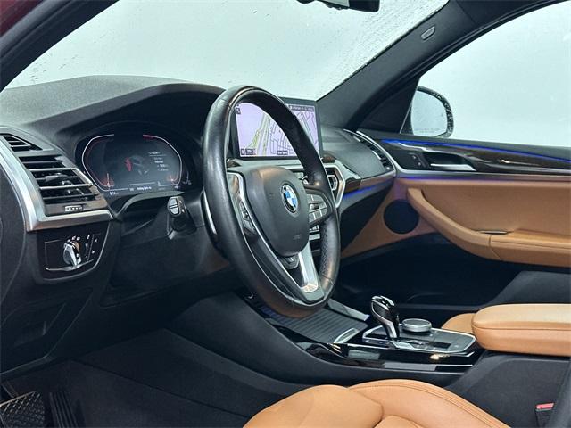 PREMIUM PACKAGE 2. X3 sDrive30i, 4D Sport Utility, 2.0L I4 TwinPower Turbo, 8-Speed Automatic Sport, Aventurin Red Metallic, Cognac w/Perforated SensaTec Upholstery, Connected Package Pro, Gesture Control, Heated Front Seats, Heated Steering Wheel, Lumbar Support, Panoramic Moonroof, Premium Package 2. This vehicle has been equipped with our OPTIONAL dealer-installed Total Confidence Plus Package ($2,995), which includes: Loaner for Life, Digital Fraud Protection, Anti-Theft Vin Marking, Collision Loyalty Credit, Stolen Vehicle Assistance, Paint and Fabric Protection, 1st Oil Change, A/C Refresh Service, Rain Repellent, 7-Day Exchange (used only),Headlight Protection, 2nd Key & Remote, Full Tank of Gas, Nitrogen Tire Service, Door Edge & Cup Guards, Roadside Assistance Plan, $500 Coupon, Additional 1 Month/1,000 Mile Warranty (non-CPO used vehicles), and a Customer Welcome Kit with Customer Mobile App . This package is optional, not required by law, and not included in the advertised price. It may be purchased separately at the time of sale.