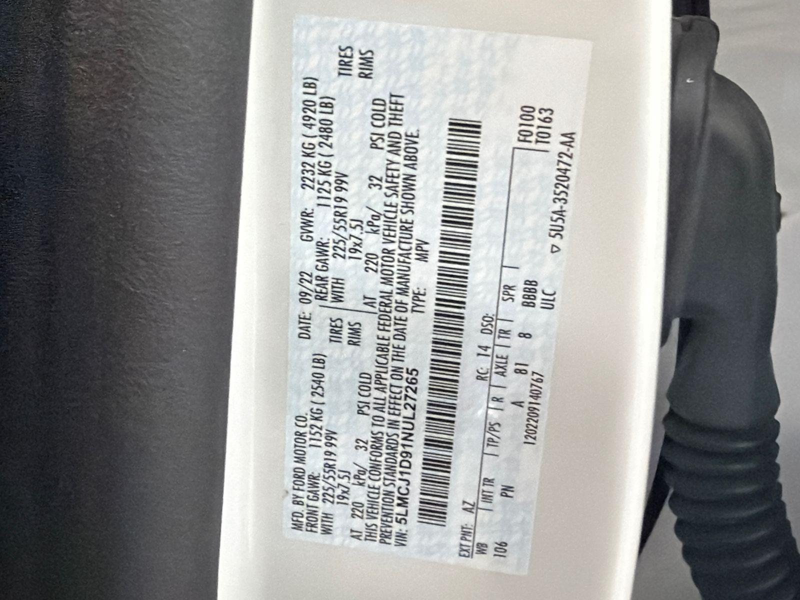 VIN #: 5LMCJ1D91NUL27265