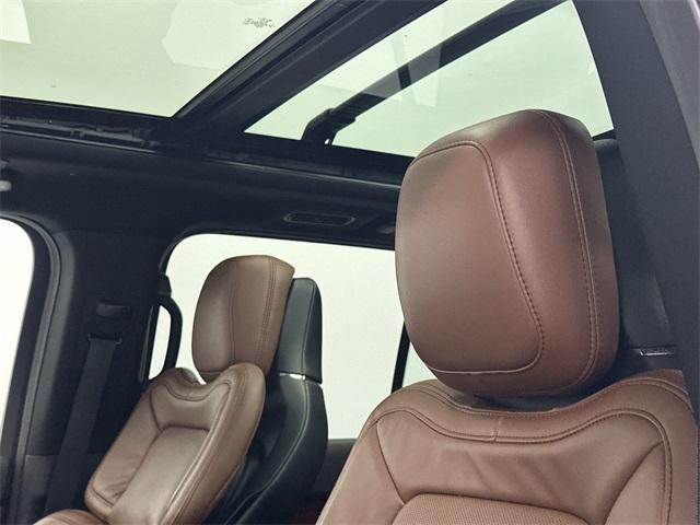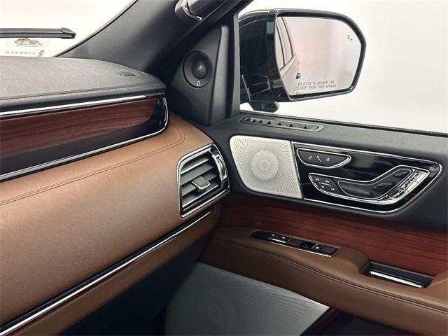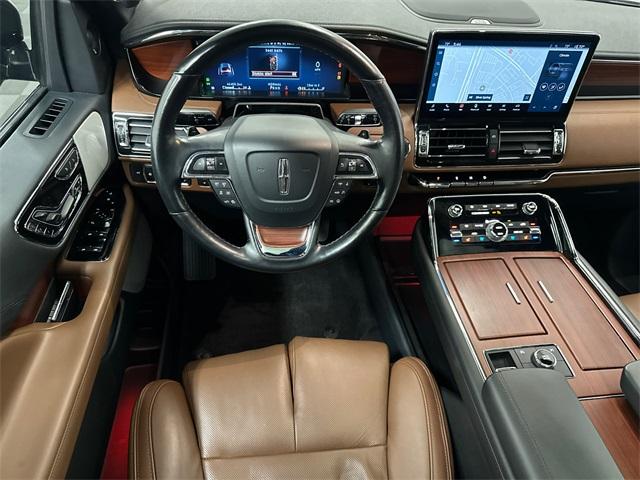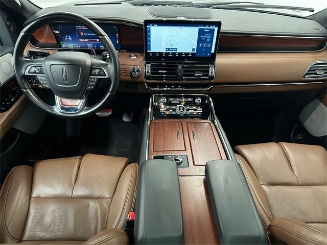 Navigator L Reserve, 4D Sport Utility, 10-Speed Automatic, 4WD, Black Metallic, Roast Leather, 2nd Row Heated/Ventilated 40/Console/40 Seat, 3rd row seats: split-bench, Active Park Assist 2.0 Prep Kit, Adaptive suspension, Alloy wheels, AM/FM radio: SiriusXM with 360L, Auto High-beam Headlights, Auto Start-Stop Technology, Auto-leveling suspension, Body-Color Exterior Mirror Finish, Brake assist, Class IV w/4-Pin & 7-Pin Connectors, Delay-off headlights, Dual front impact airbags, Dual front side impact airbags, Electronic Stability Control, Emergency communication system: 911 Assist, Equipment Group 201A Reserve I, Exterior Parking Camera Rear, Four wheel independent suspension, Front fog lights, Front Tow Hooks, Fully automatic headlights, Head restraints memory, Heads-Up Display, Heated front seats, Heated rear seats, Heated steering wheel, Heavy-Duty Trailer Tow Package, Illuminated 1st & 2nd Row Seat Belts, Lincoln Lit Star in Grille, Luxury Package, Memory seat, Monochromatic Lincoln Badge, Monochromatic Lincoln Grille, Monochromatic Package, Navigation system: Connected Navigation (3-year trial), Occupant sensing airbag, Overhead airbag, Panic alarm, Perfect Position Seats (30-Way) w/Active Motion, Power adjustable rear head restraints, Power driver seat, Power Liftgate, Power moonroof: Panoramic Vista Roof, Power passenger seat, Pro-Trailer Backup Assist 2.0, Radio: Revel AM/FM/HD/MP3 Audio System, Rear anti-roll bar, Reclining 3rd row seat, Revel Ultima 3D Audio System w/28 Speakers, Security system, SiriusXM w/360L, Smart Trailer Tow, Speed control, Speed-sensing steering, Split folding rear seat, Steering wheel mounted audio controls, SYNC 4 Communications & Entertainment System, Tiered Cargo Area Management System, Traction control, Trailer Brake Controller, Trailer Sway Control, Ventilated front seats, Ventilated rear seats, Voice-Activated Touchscreen Navigation System, Wheels: 22" Black Aluminum. This vehicle has been equipped with our OPTIONAL dealer-installed Total Confidence Plus Package ($2,995), which includes: Loaner for Life, Digital Fraud Protection, Anti-Theft Vin Marking, Collision Loyalty Credit, Stolen Vehicle Assistance, Paint and Fabric Protection, 1st Oil Change, A/C Refresh Service, Rain Repellent, 7-Day Exchange (used only),Headlight Protection, 2nd Key & Remote, Full Tank of Gas, Nitrogen Tire Service, Door Edge & Cup Guards, Roadside Assistance Plan, $500 Coupon, Additional 1 Month/1,000 Mile Warranty (non-CPO used vehicles), and a Customer Welcome Kit with Customer Mobile App . This package is optional, not required by law, and not included in the advertised price. It may be purchased separately at the time of sale.