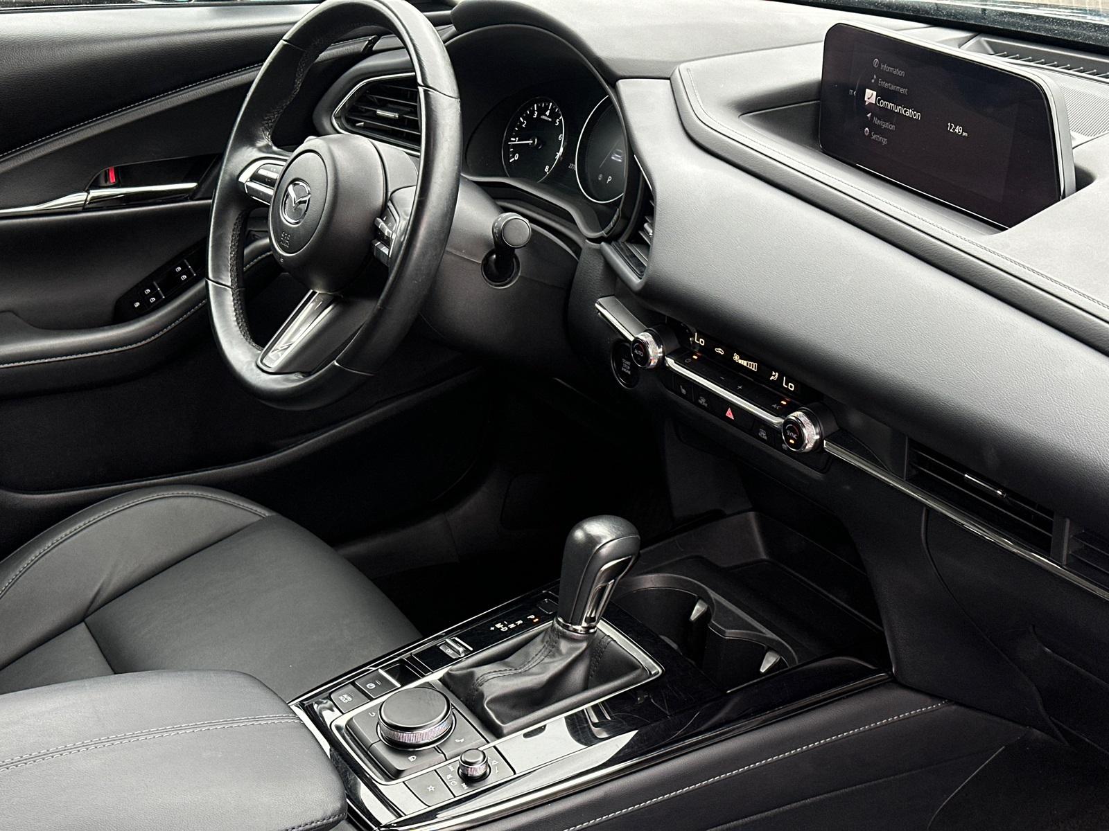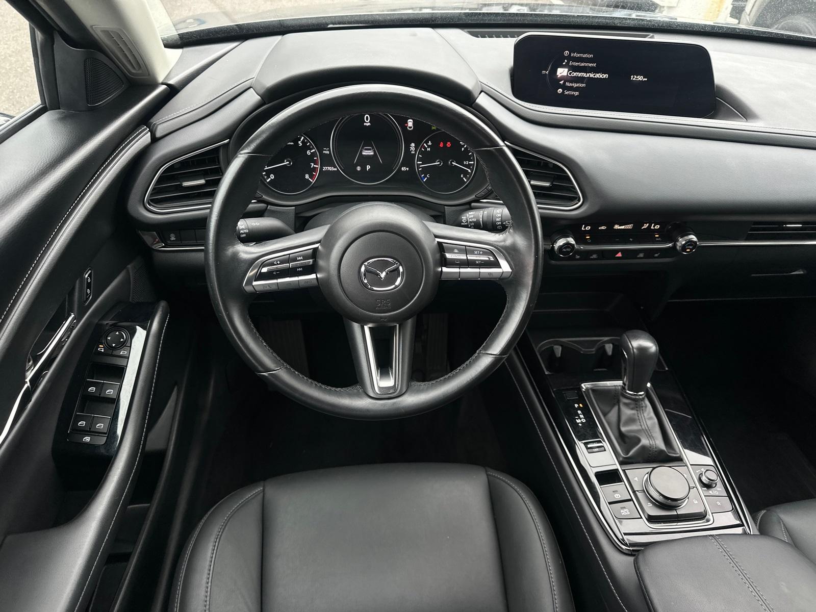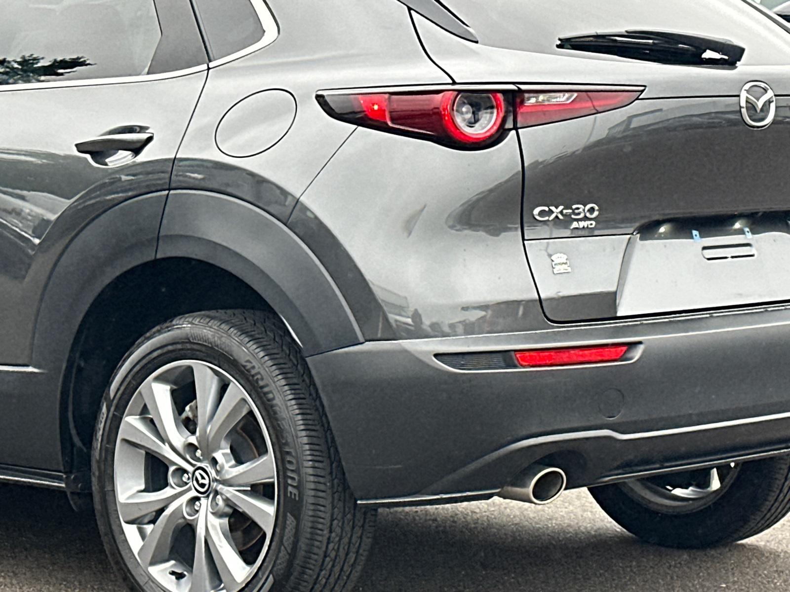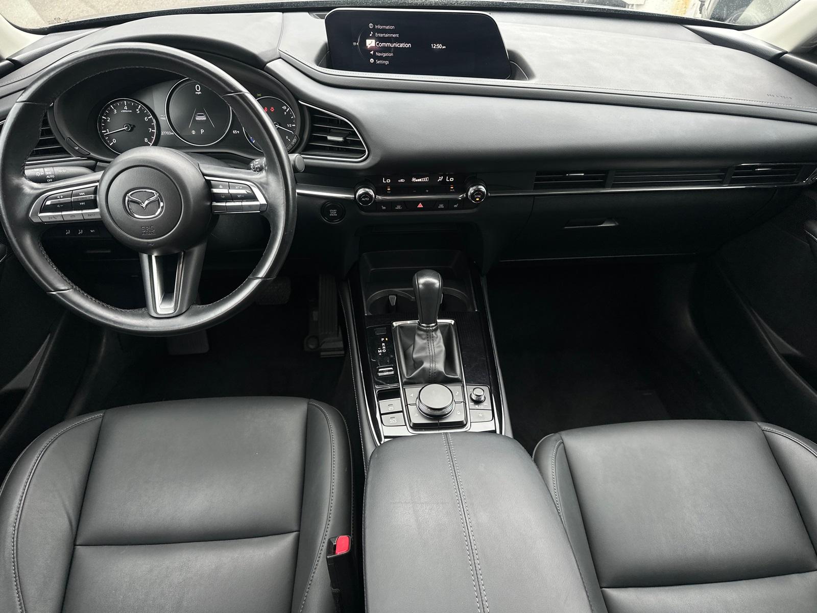 CX-30 2.5 S Preferred Package, 4D Sport Utility, SKYACTIV® 2.5L 4-Cylinder DOHC 16V, 6-Speed Automatic, AWD, Machine Gray Metallic, Black w/Leatherette Seat Trim, 8 Speakers, Alloy wheels, Auto High-beam Headlights, Automatic temperature control, Brake assist, Delay-off headlights, Dual front impact airbags, Dual front side impact airbags, Electronic Stability Control, Emergency communication system: Mazda Connected Services (3-year complimentary trial included), Exterior Parking Camera Rear, Front anti-roll bar, Front Bucket Seats, Front dual zone A/C, Front wheel independent suspension, Fully automatic headlights, Heated Front Bucket Seats, Knee airbag, MAZDA CONNECT Infotainment System, Memory seat, Occupant sensing airbag, Overhead airbag, Panic alarm, Power driver seat, Power Moonroof, Radio: AM/FM/HD Audio System, Rear side impact airbag, Speed control, Speed-sensing steering, Steering wheel mounted audio controls, Traction control.This vehicle has been equipped with our OPTIONAL dealer-installed Total Confidence Plus Package ($2,995), which includes: Loaner for Life, Digital Fraud Protection, Anti-Theft Vin Marking, Collision Loyalty Credit, Stolen Vehicle Assistance, Paint and Fabric Protection, 1st Oil Change, A/C Refresh Service, Rain Repellent, 7-Day Exchange (used only),Headlight Protection, 2nd Key & Remote, Full Tank of Gas, Nitrogen Tire Service, Door Edge & Cup Guards, Roadside Assistance Plan, $500 Coupon, Additional 1 Month/1,000 Mile Warranty (non-CPO used vehicles), and a Customer Welcome Kit with Customer Mobile App . This package is optional, not required by law, and not included in the advertised price. It may be purchased separately at the time of sale.